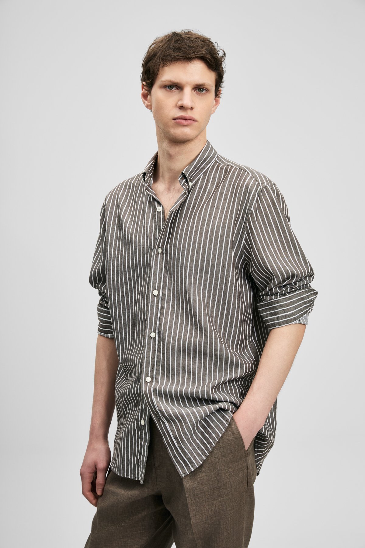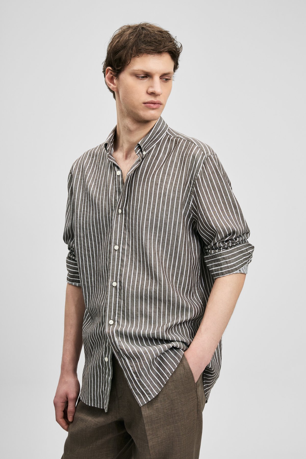 Amber Erkek Basic Gömlek Regular Fit %56 Pamuk %44 Keten Erkek Dokuma Gömlek