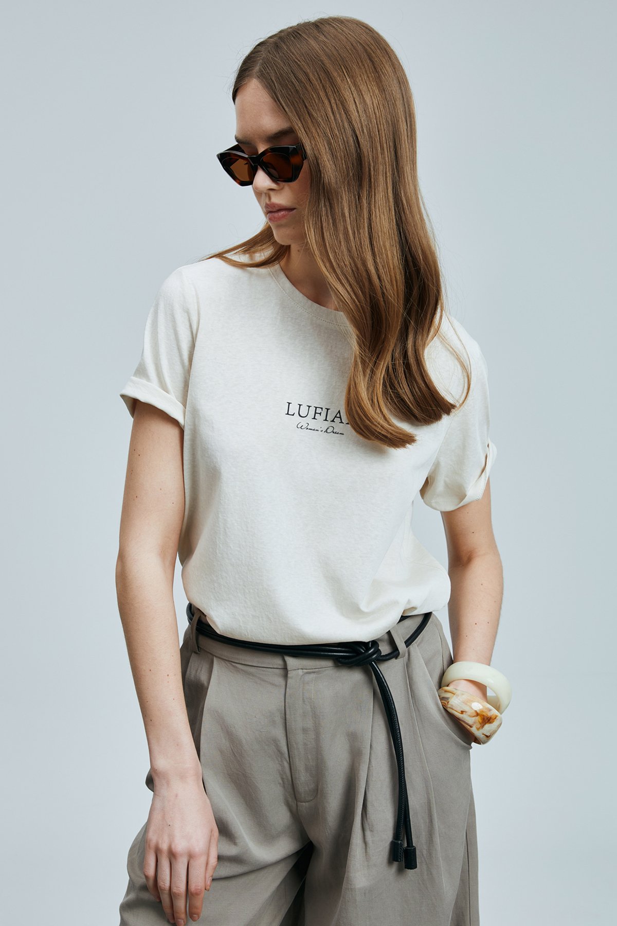 Amy Kadın Pamuklu T- Shırt Kırık Beyaz