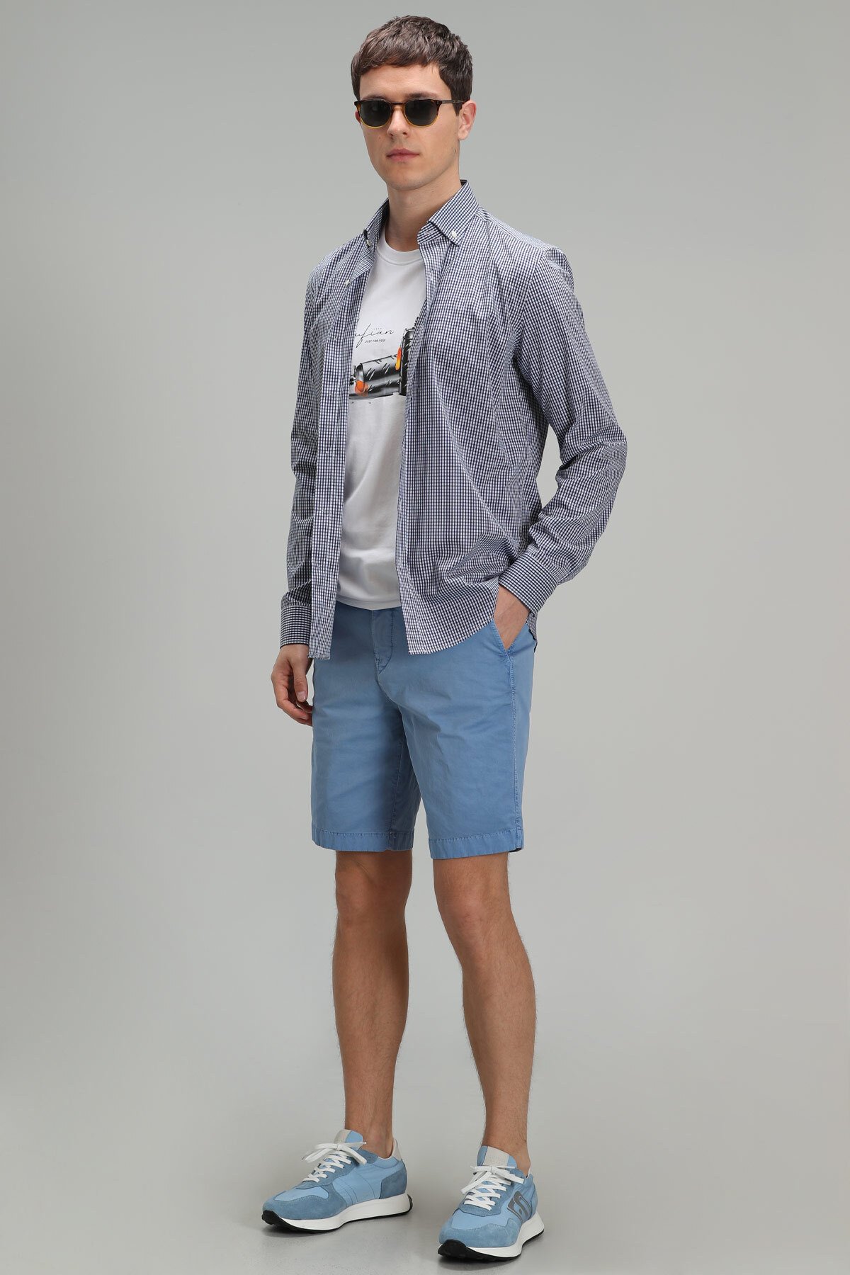 Zegler Spor Erkek Chino Şort Slim Fit Mavi