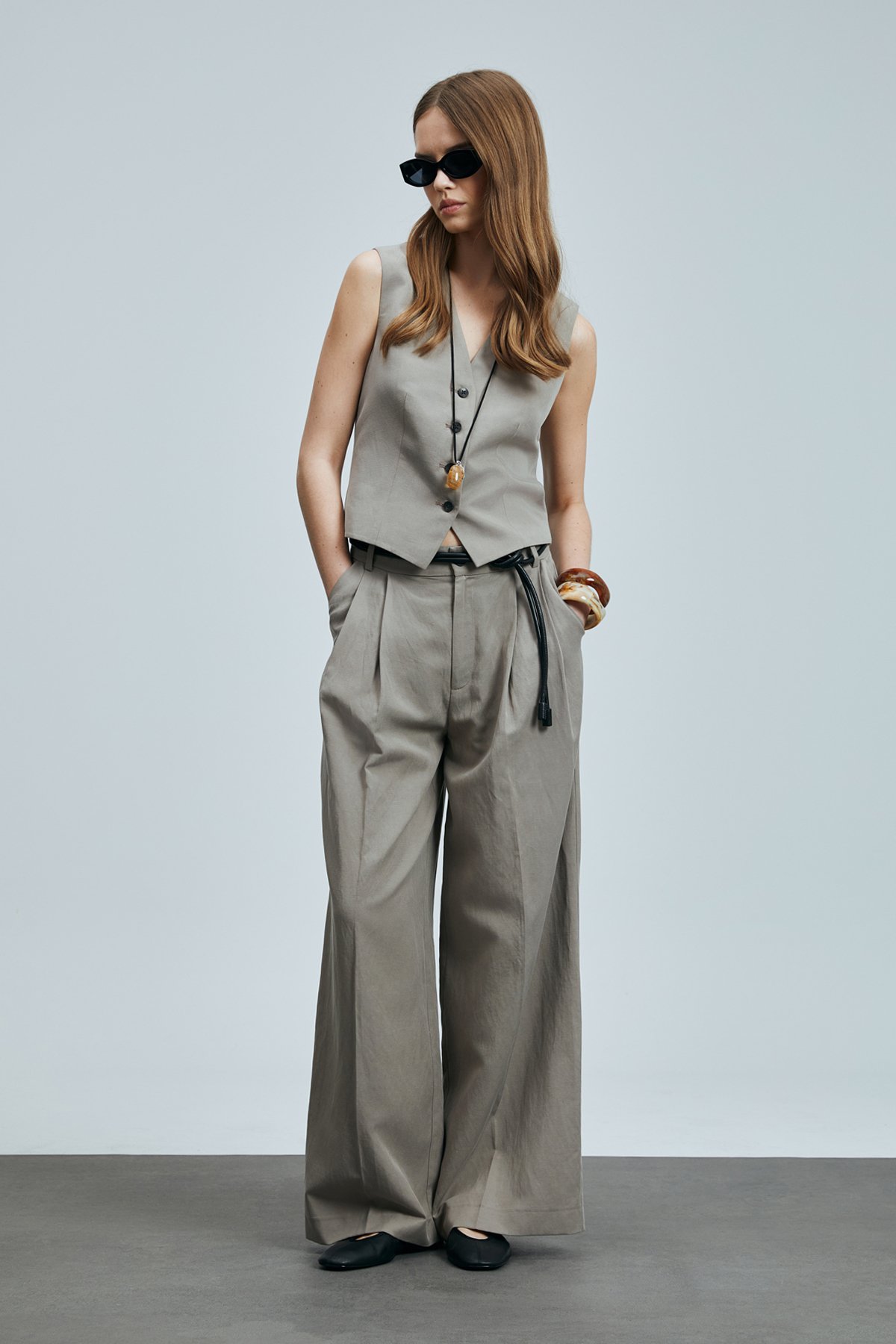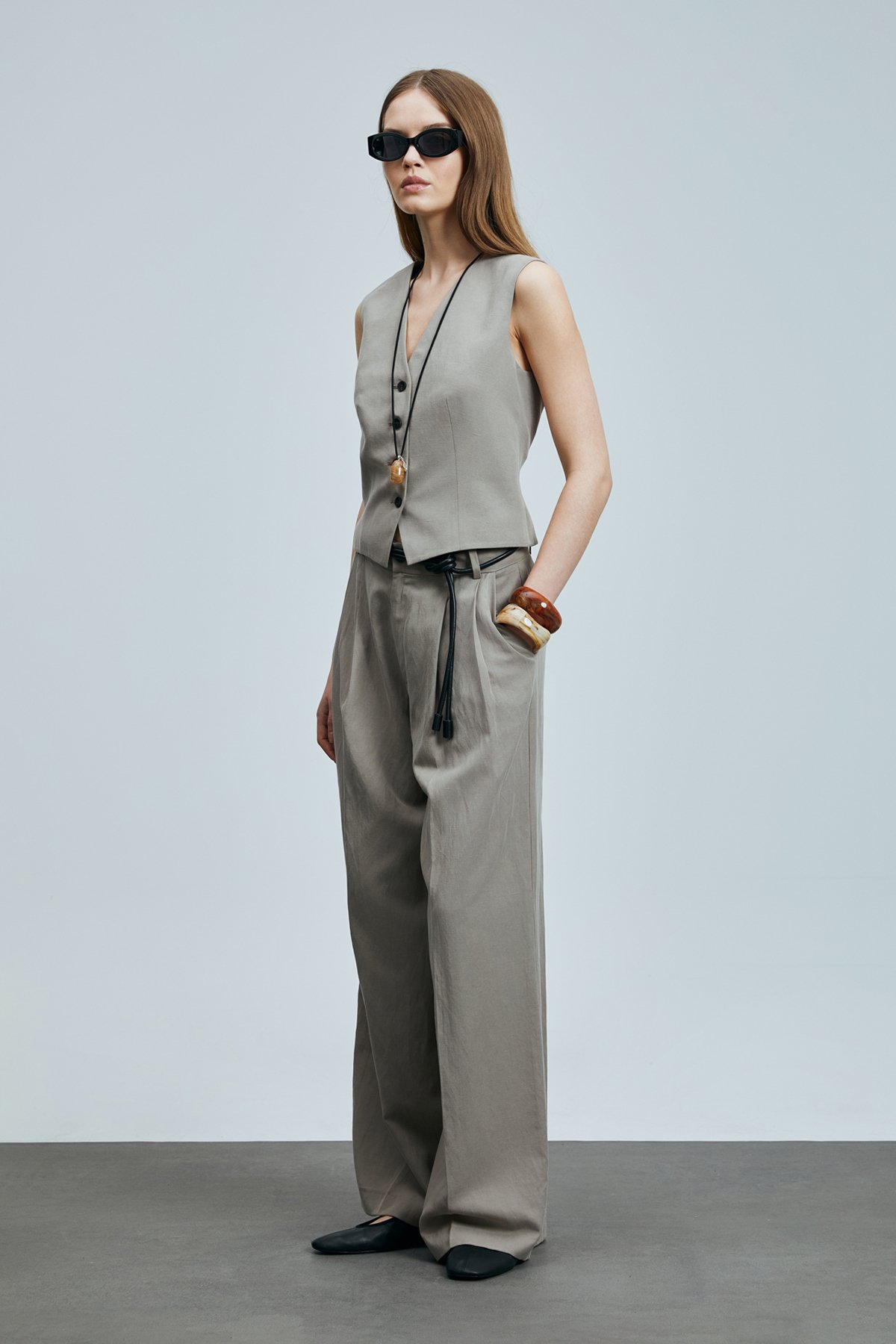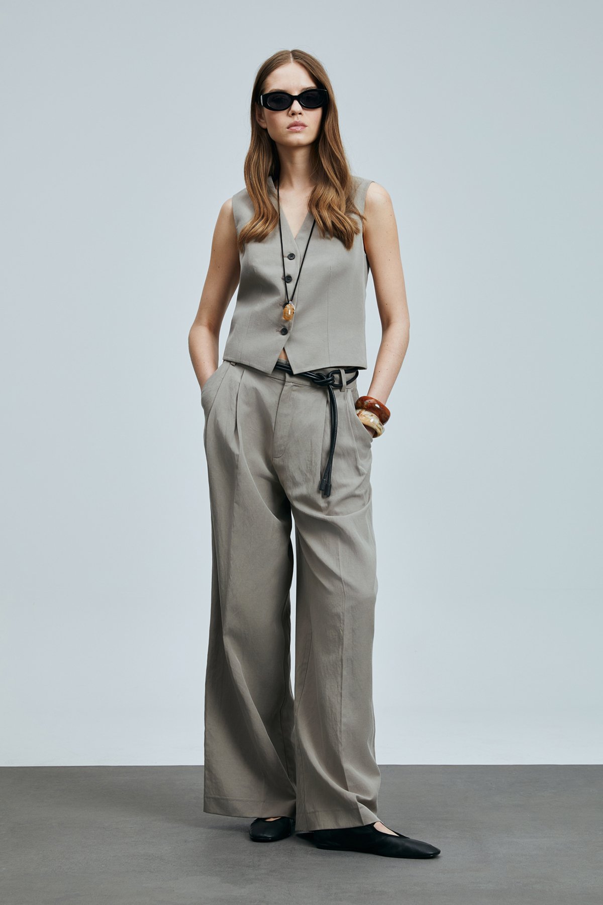 Asıa Kadın Lyocell Karışımlı Keten Pantolon Vizon