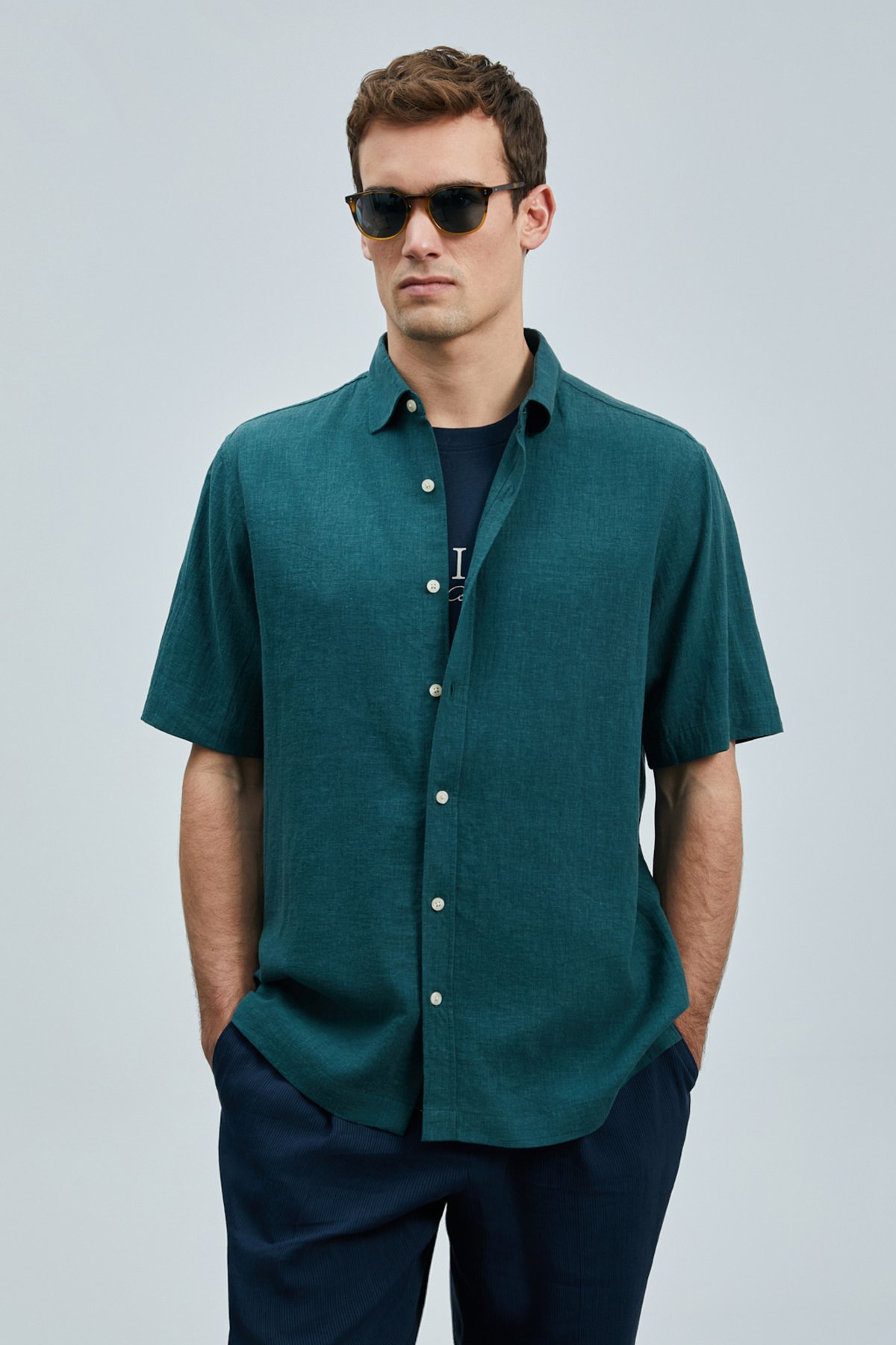 Bert Erkek Basic Gömlek Comfort Fit %100 Keten Erkek Dokuma Gömlek