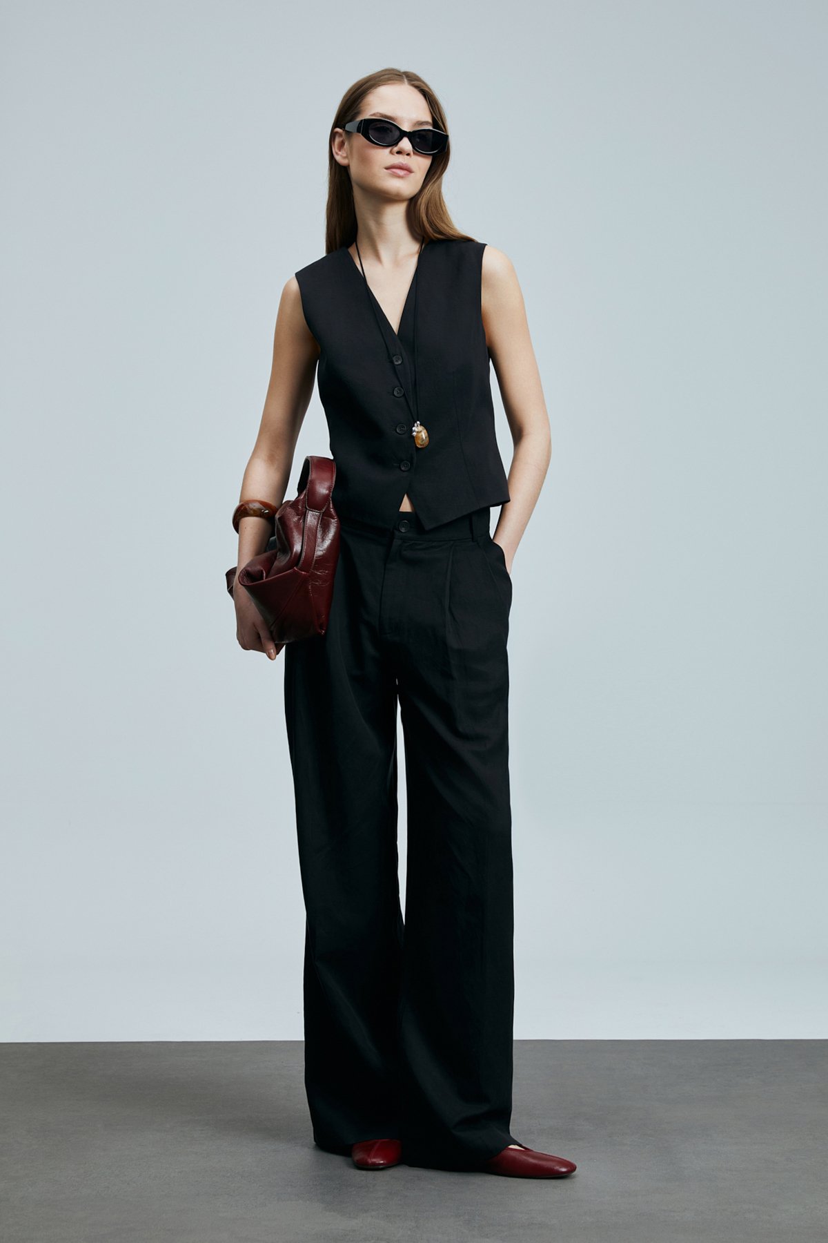 Bloom Kadın Lyocell Karışımlı Keten Yelek Siyah