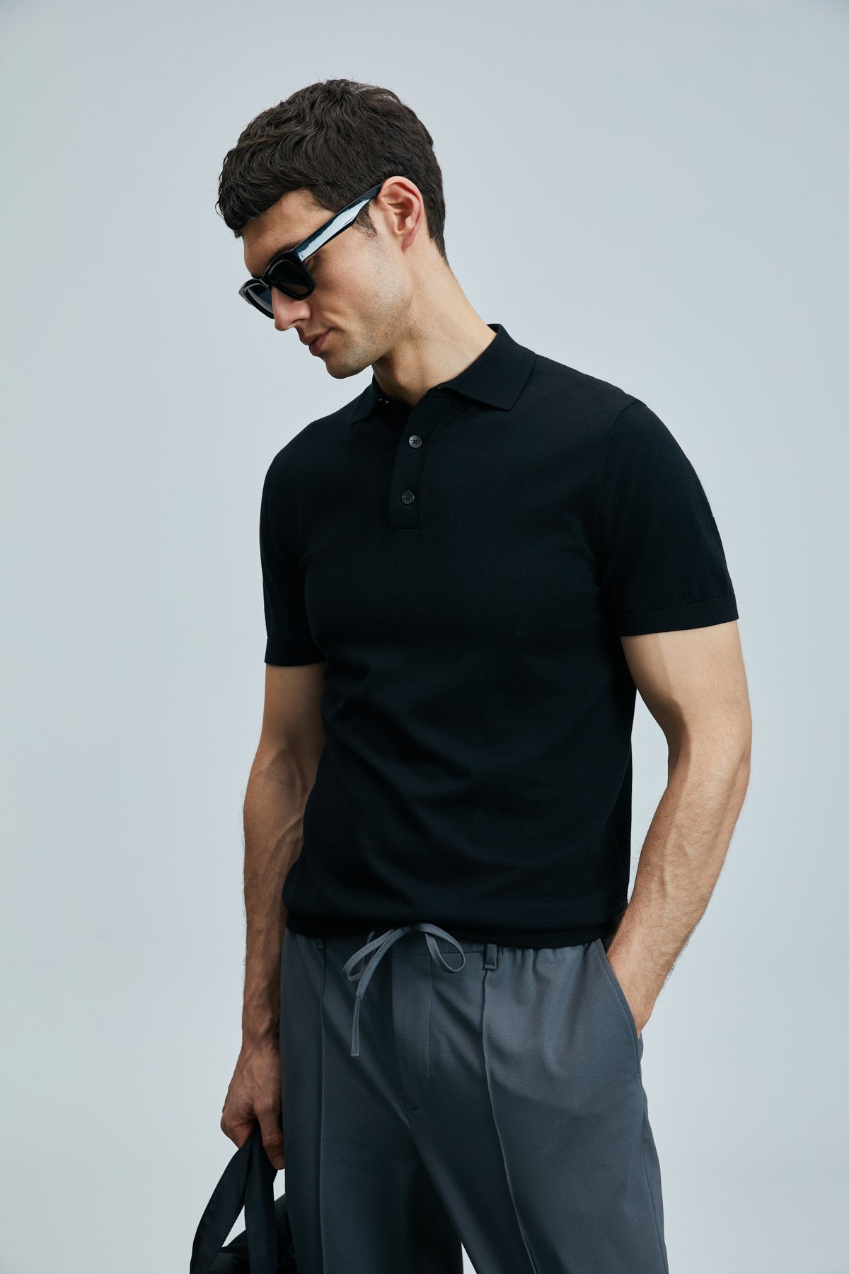 Derek Erkek İpek Karışımlı Kazak Siyah