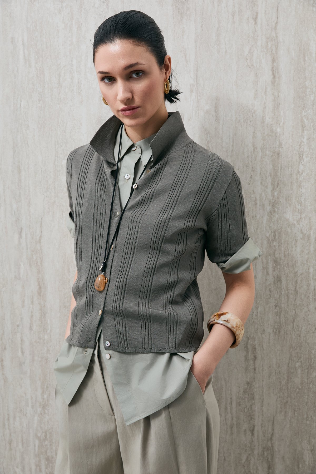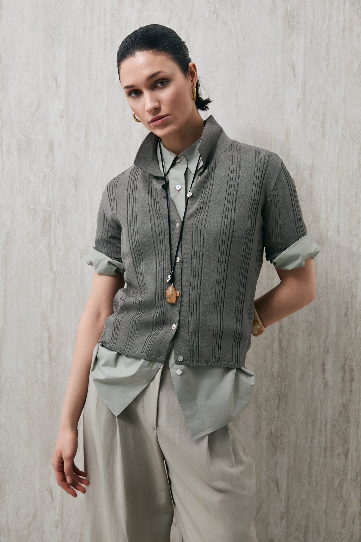 Dina Kadin Triko Gömlek % 75 Viscon %25 Polyamid Kadin Triko Gömlek