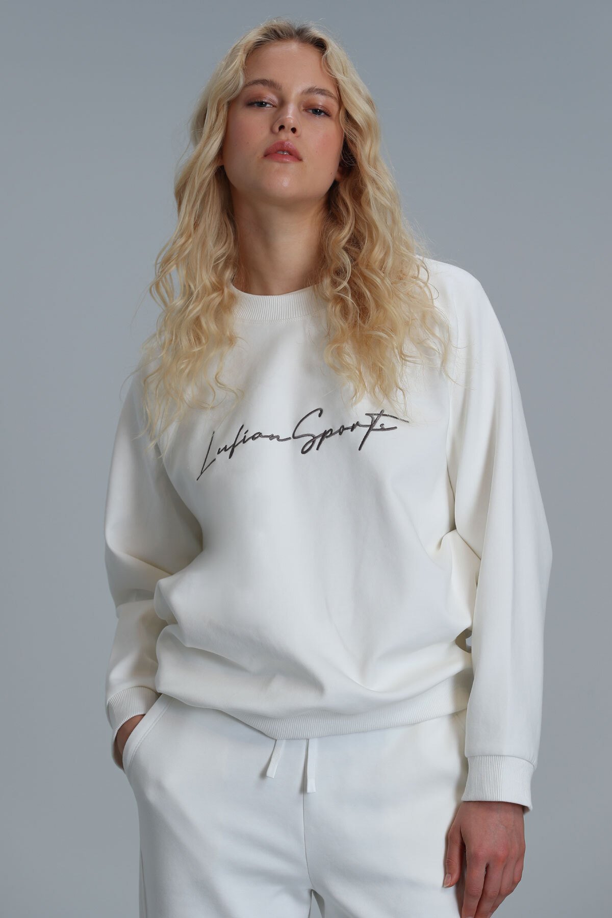 Dora Kadın Örme Sweatshırt Kırık Beyaz