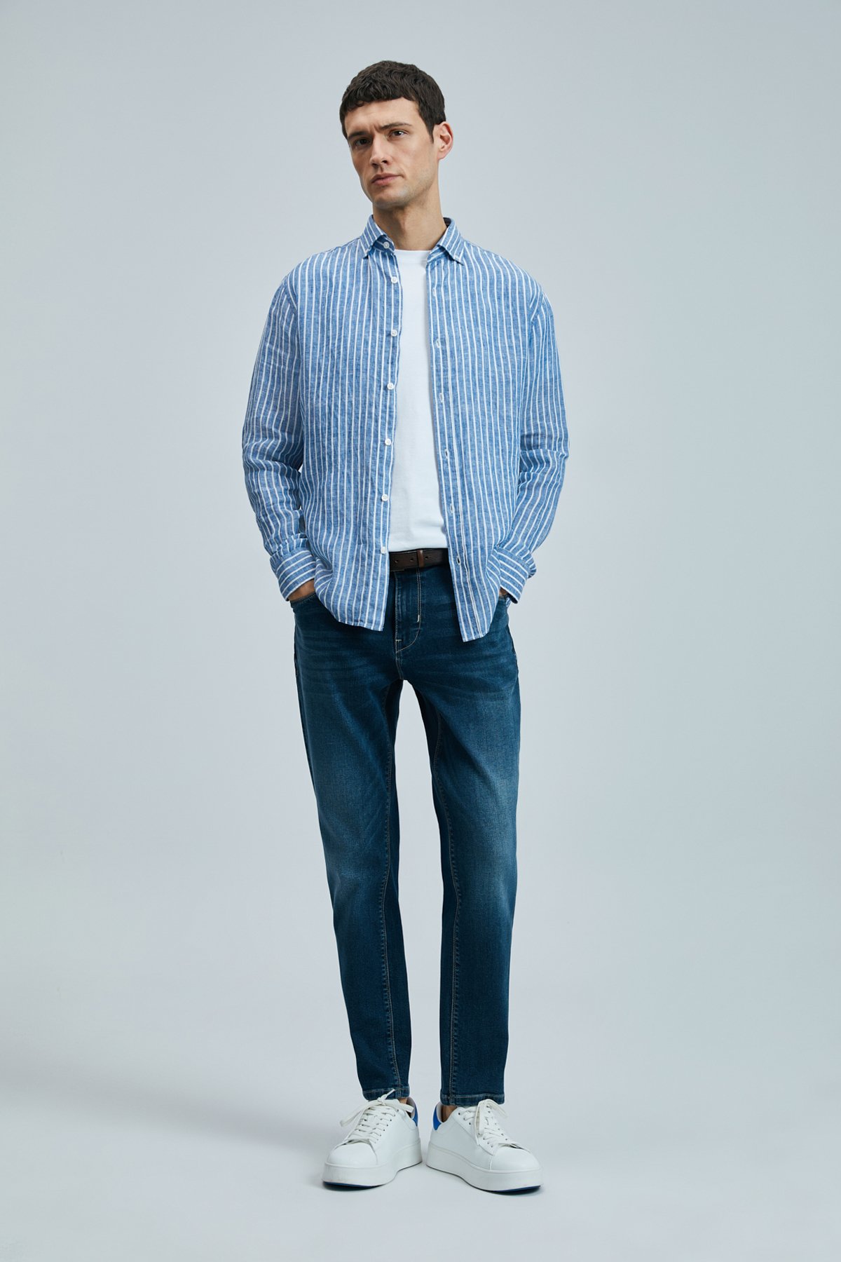 Alfred Erkek Keten Pamuklu Gömlek Regular Fit Mavi