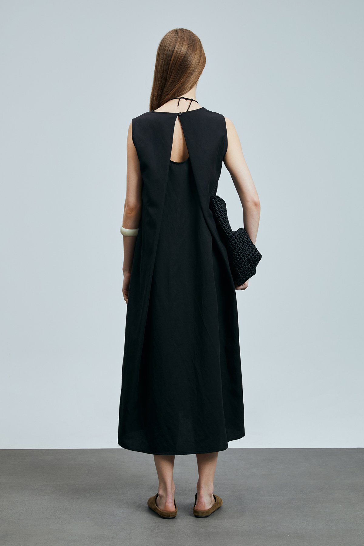 Grace Kadın Lyocell Karışımlı Keten Elbise Siyah