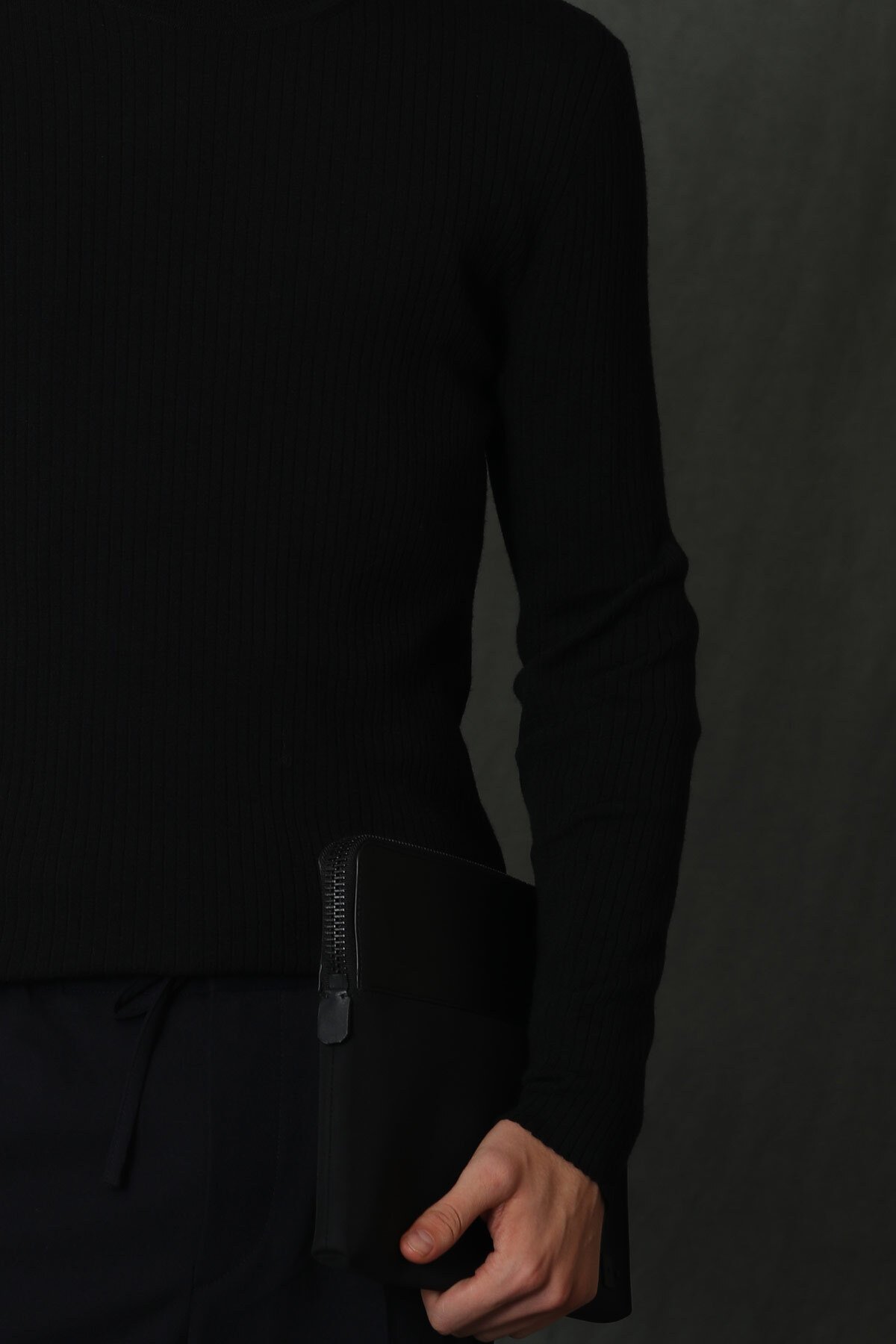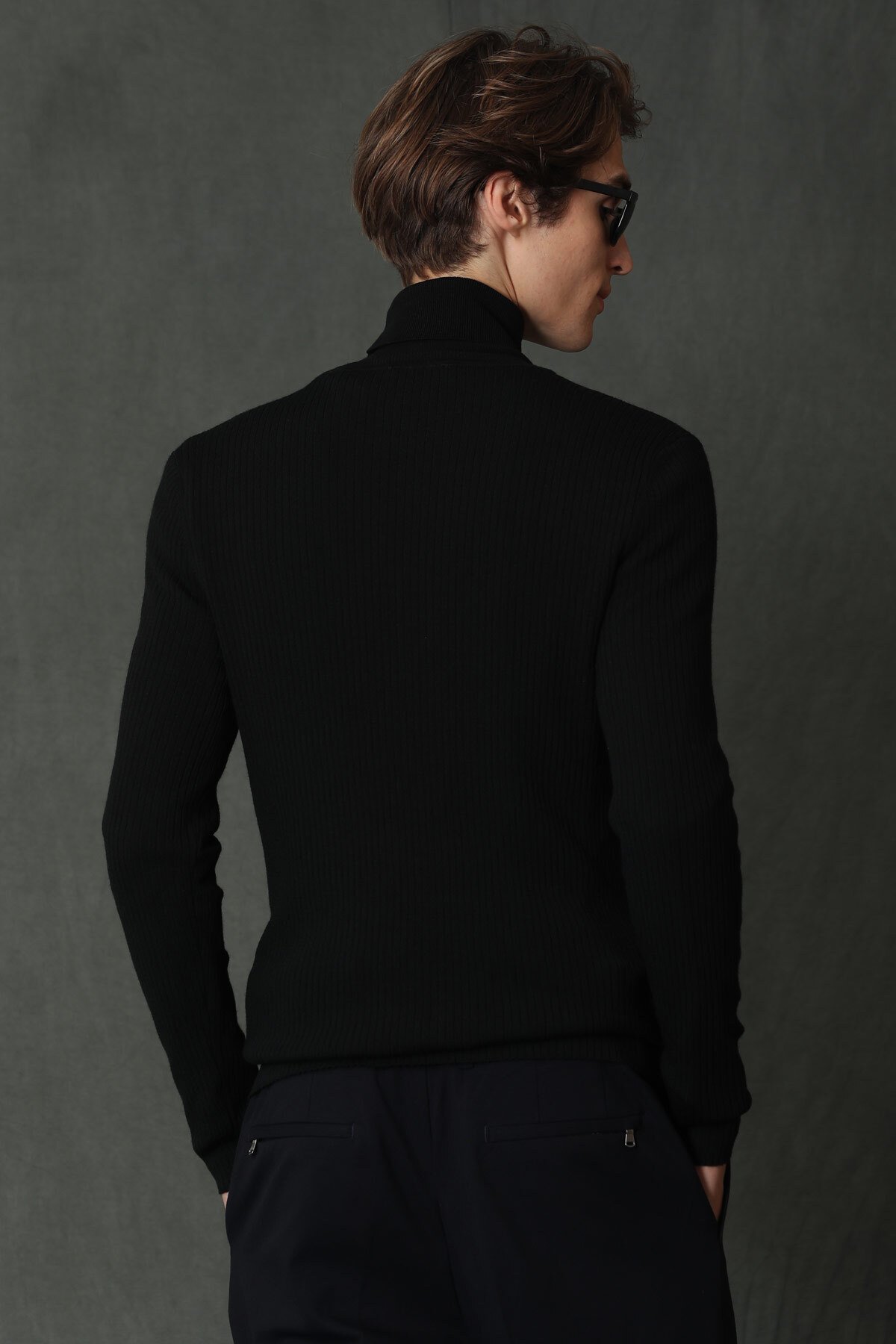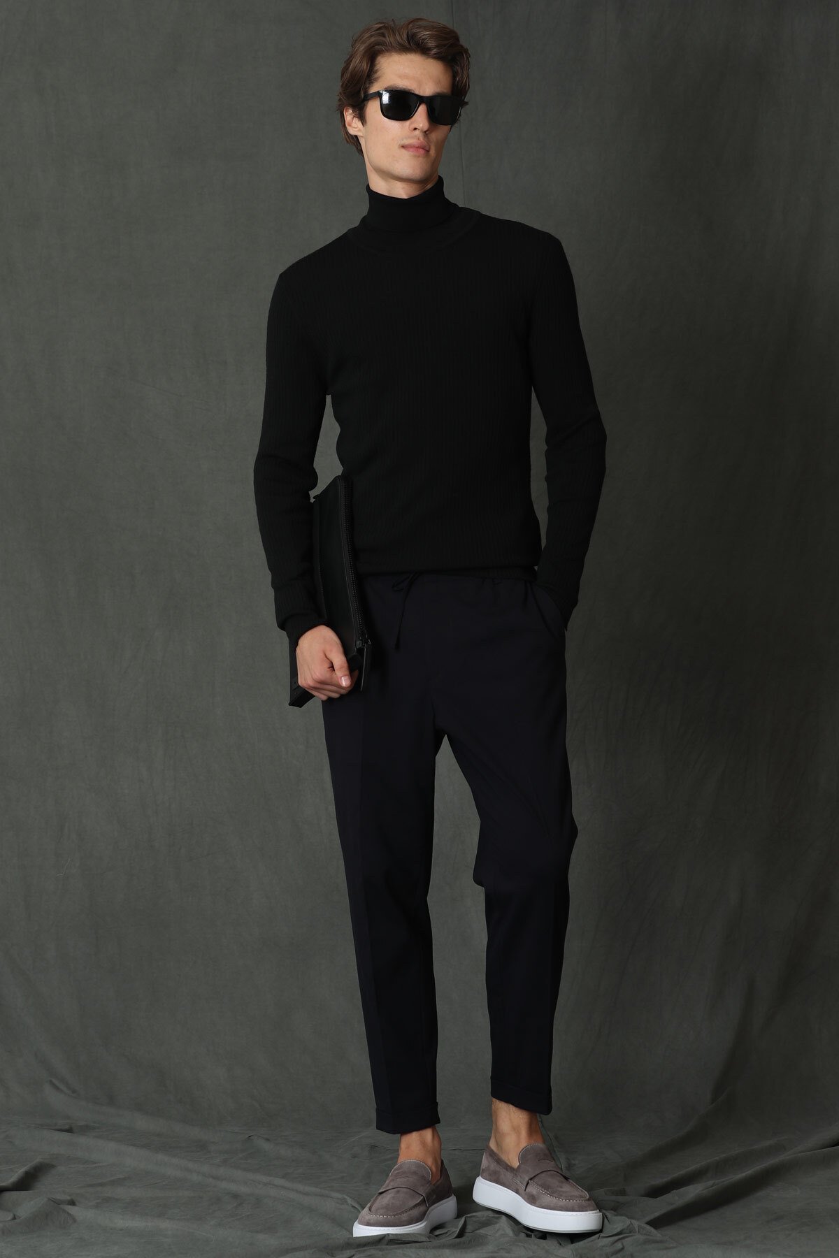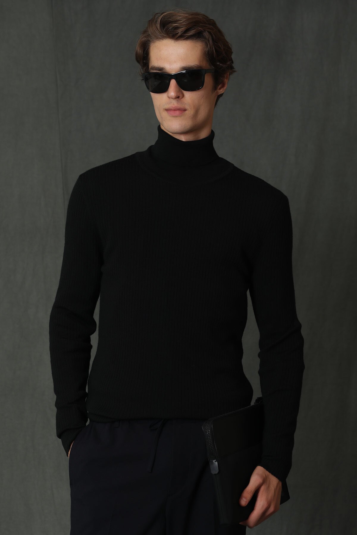 Grant Tam Balıkçı Erkek Kazak Siyah
