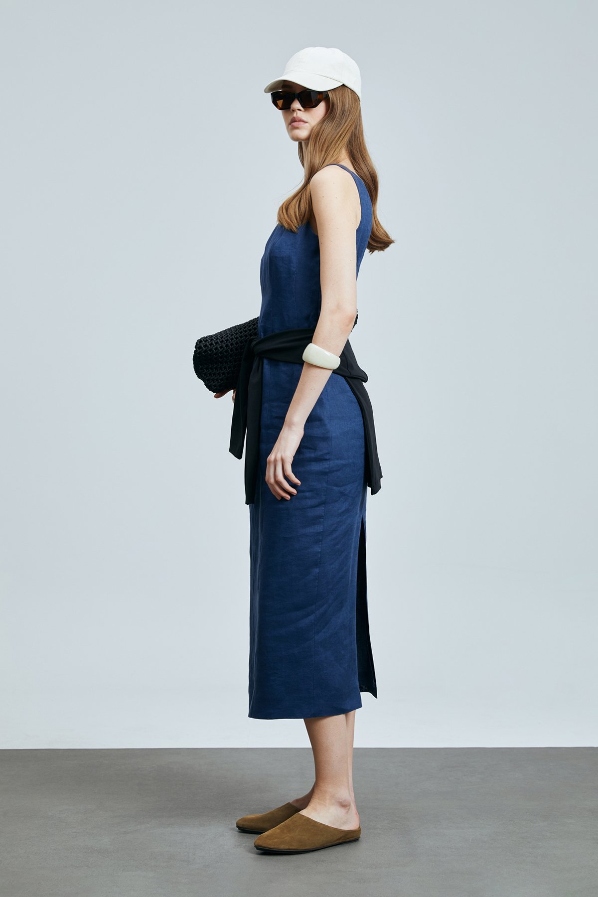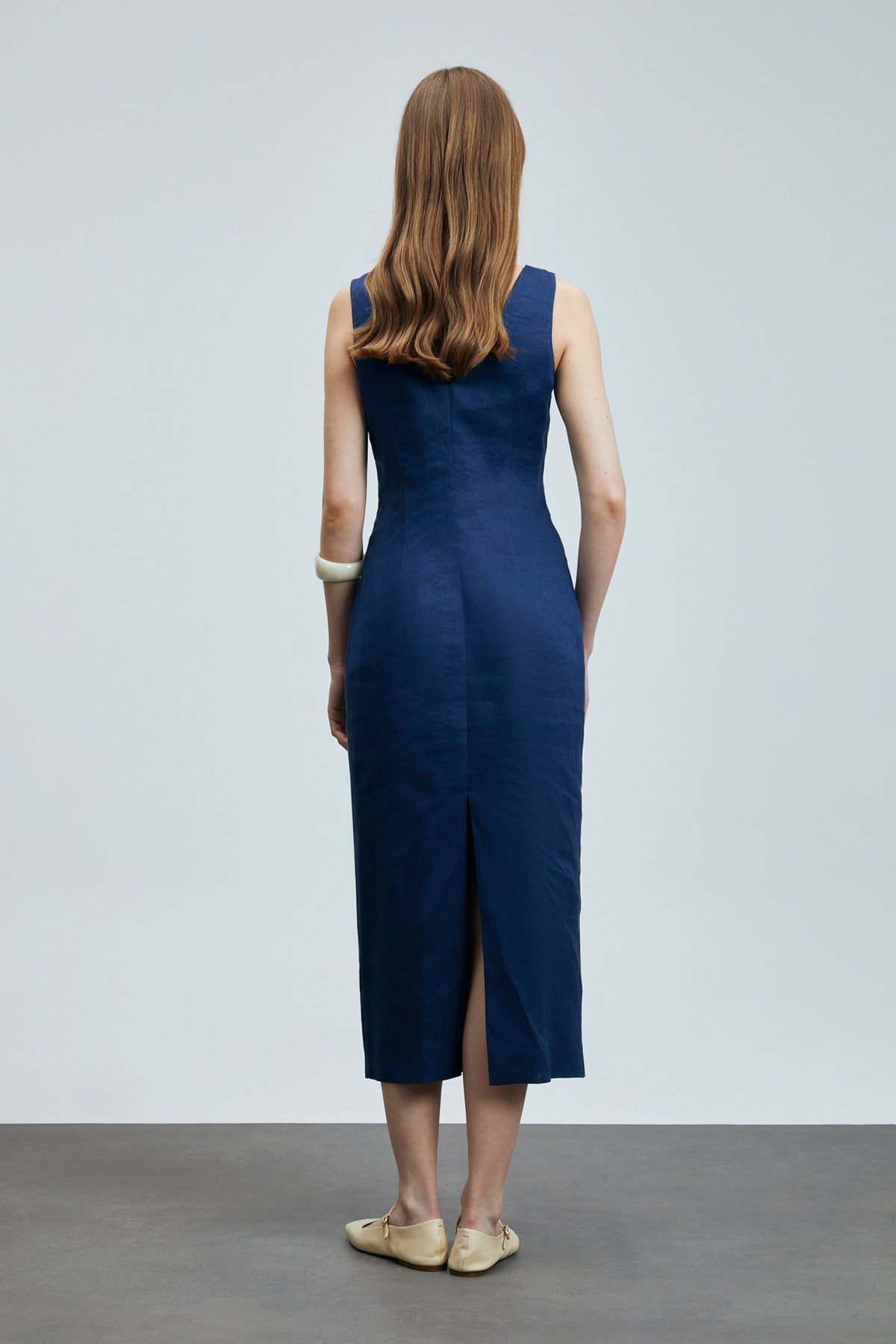 Honey Kadın Kolsuz Keten Elbise Lacivert