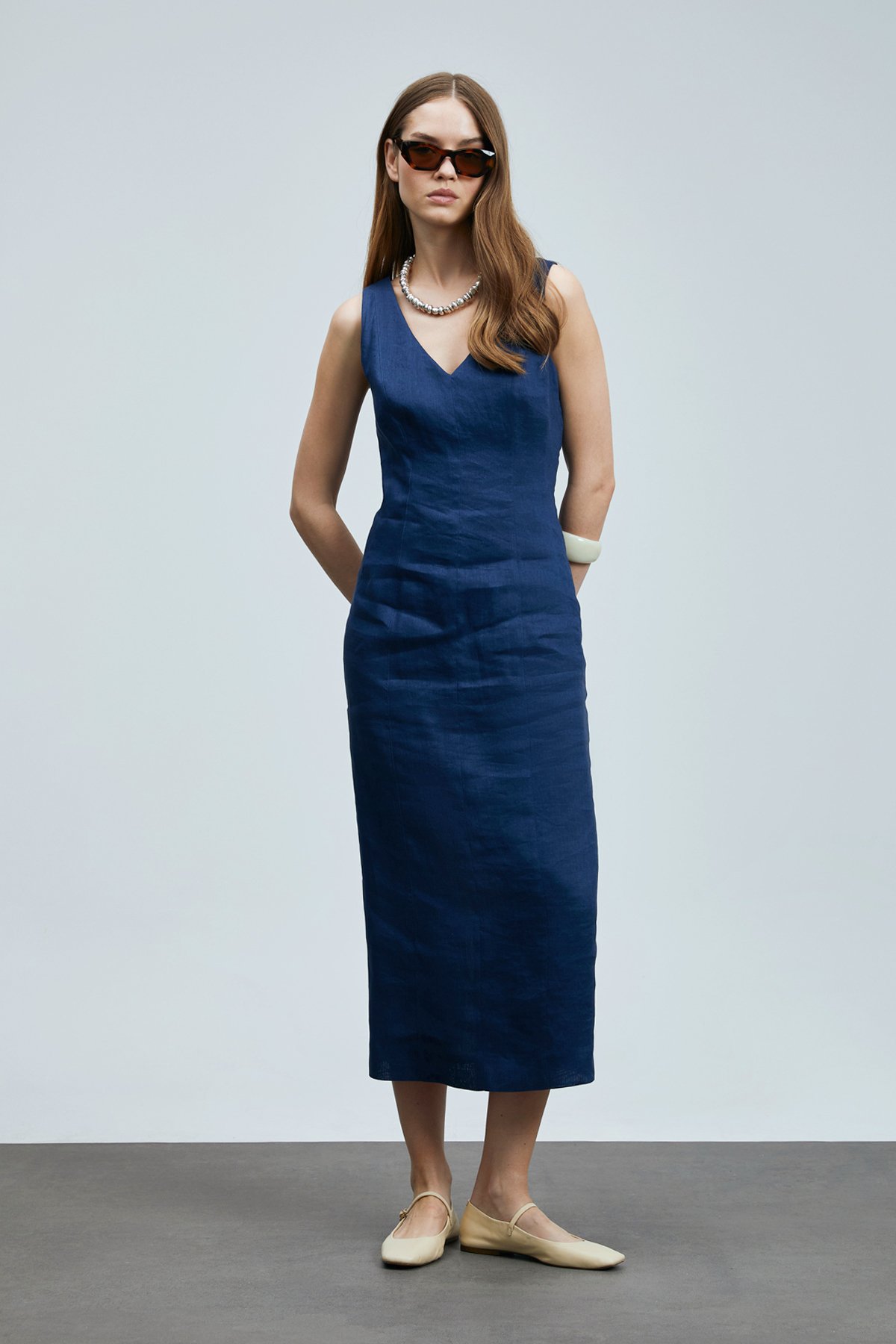 Honey Kadin Kolsuz Keten Elbise %100 Keten Dokuma Kadin Elbise