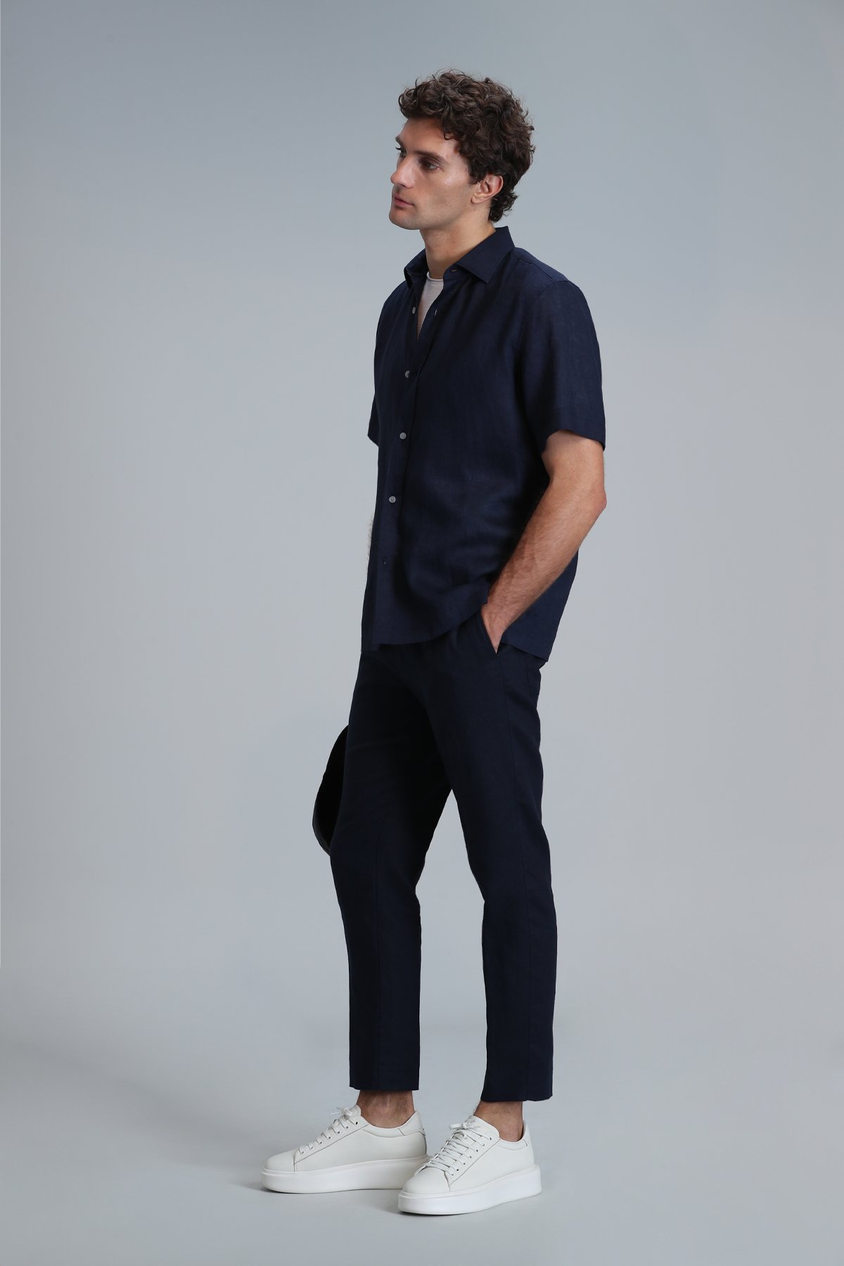 Karl Spor Erkek Chino Pantolon Slim Fit %100 Keten Erkek Dokuma Pantolon