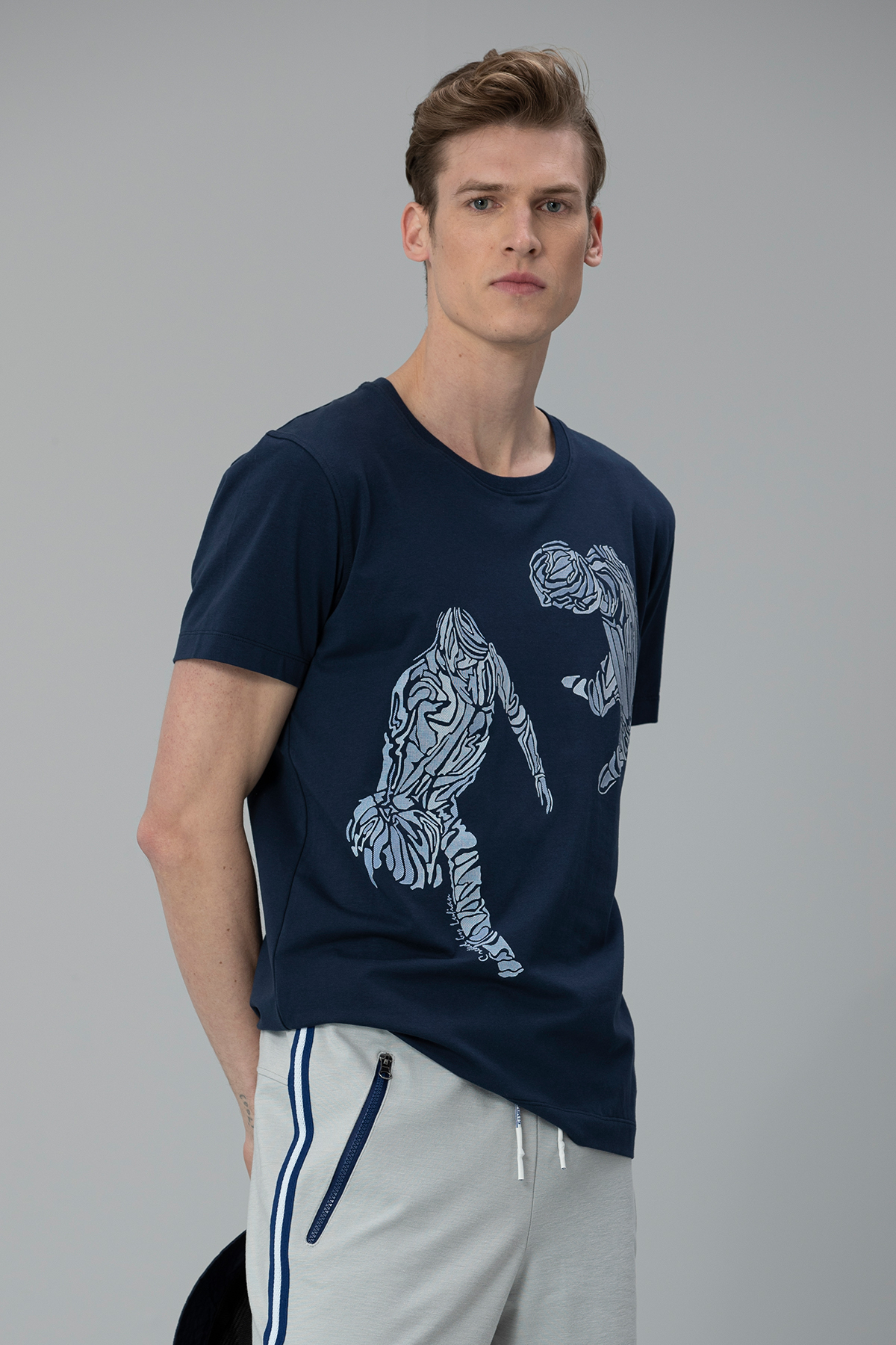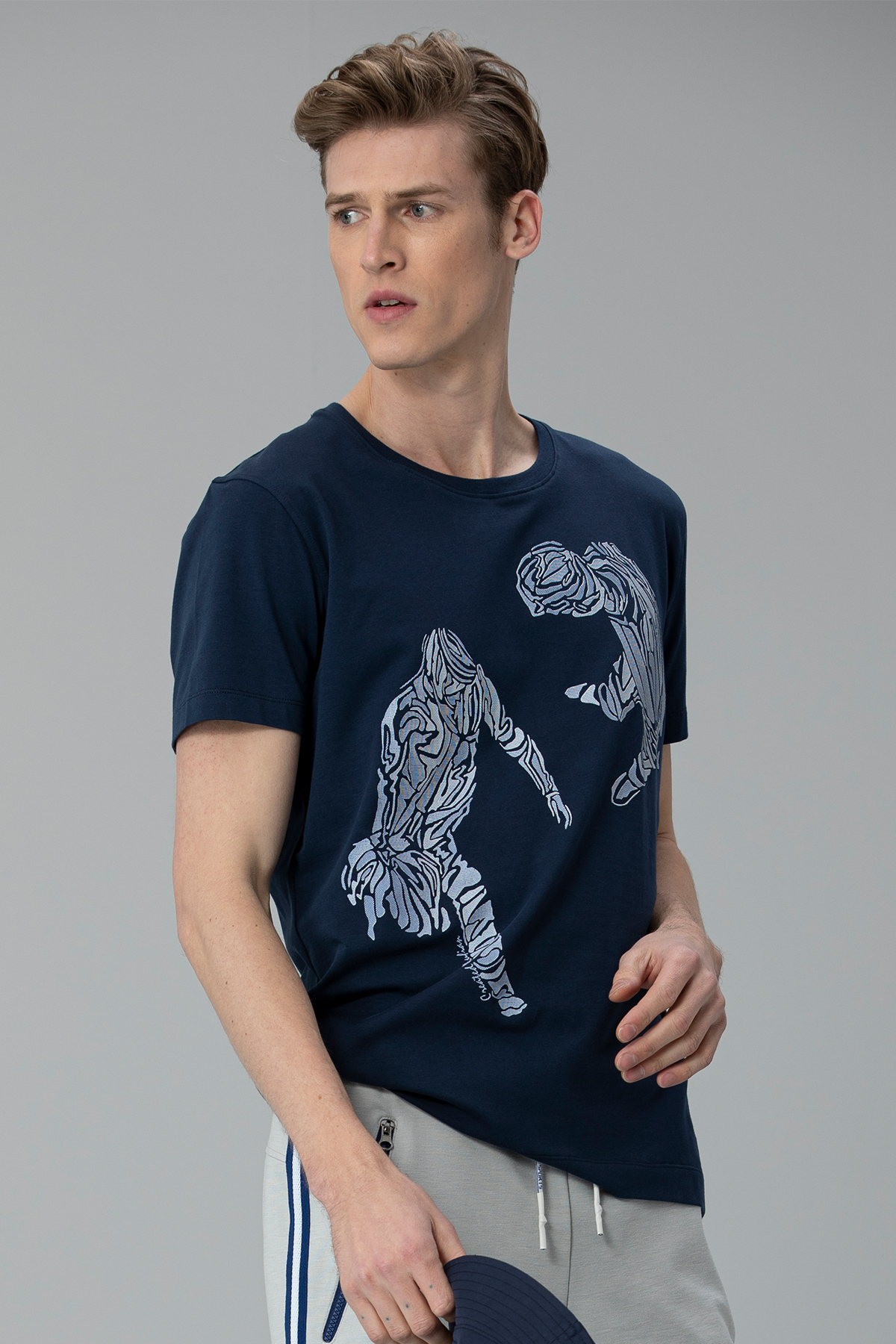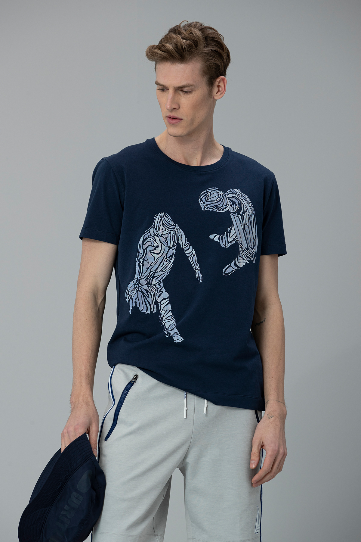 Klausı Modern Grafik T- Shirt Açık Lacivert
