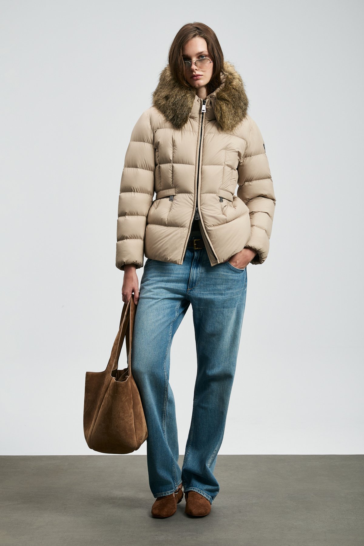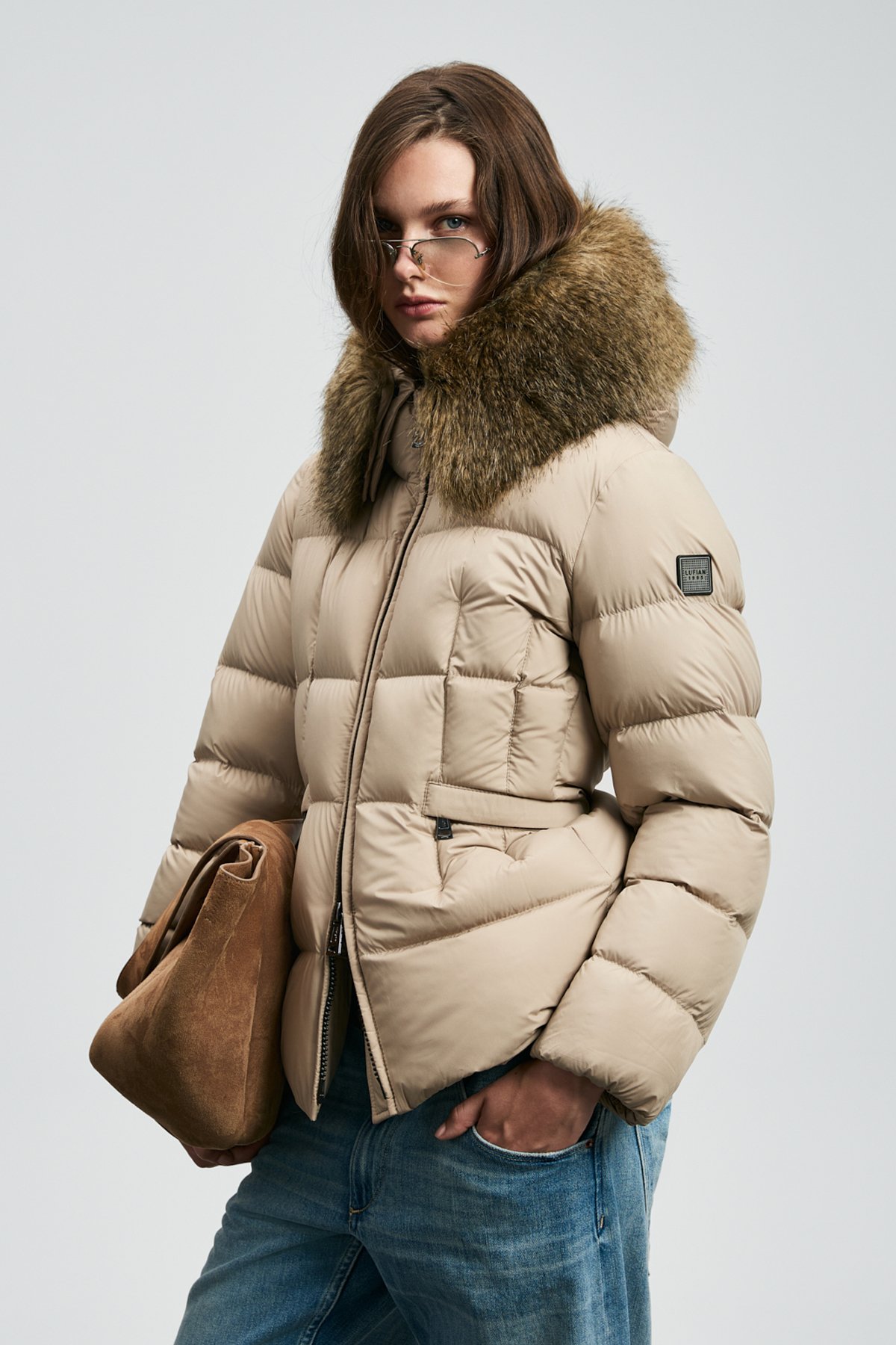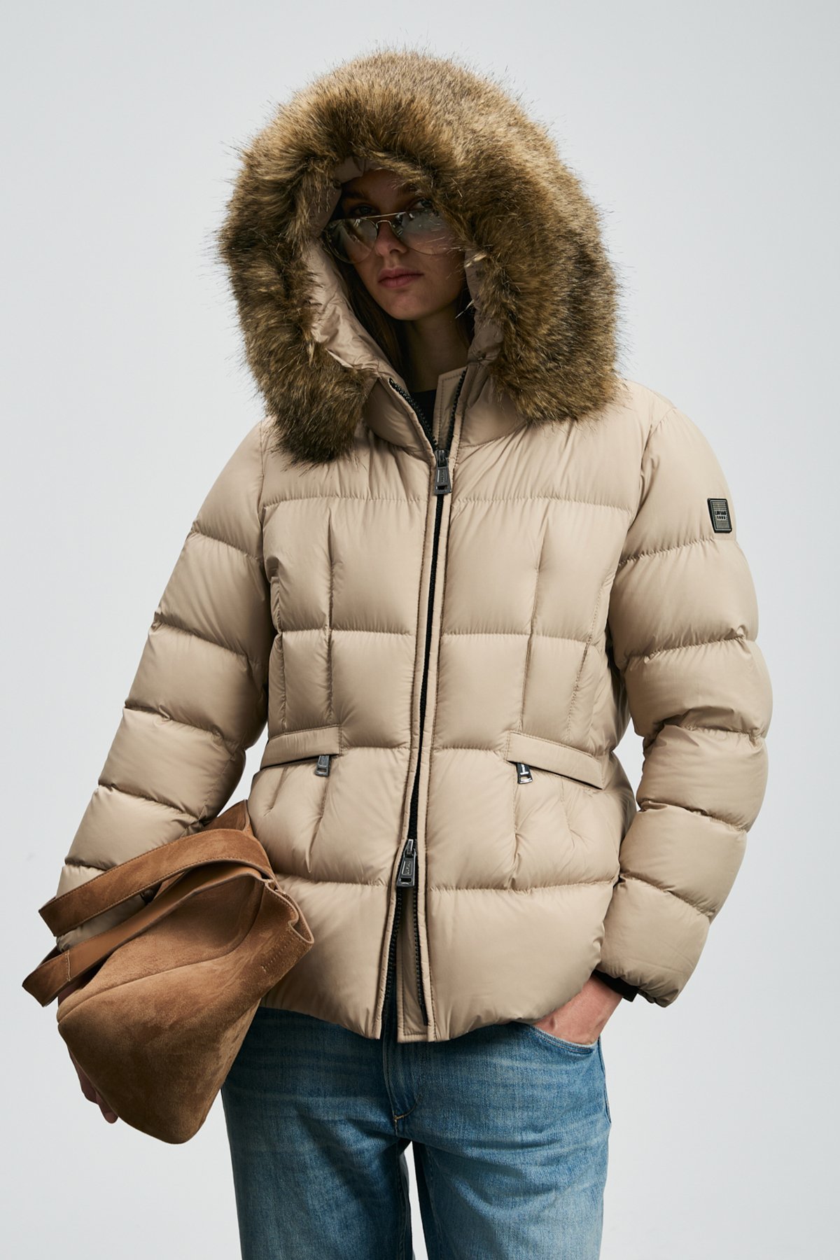 Klemantın Kaz Tüyü Kadın Mont Bej
