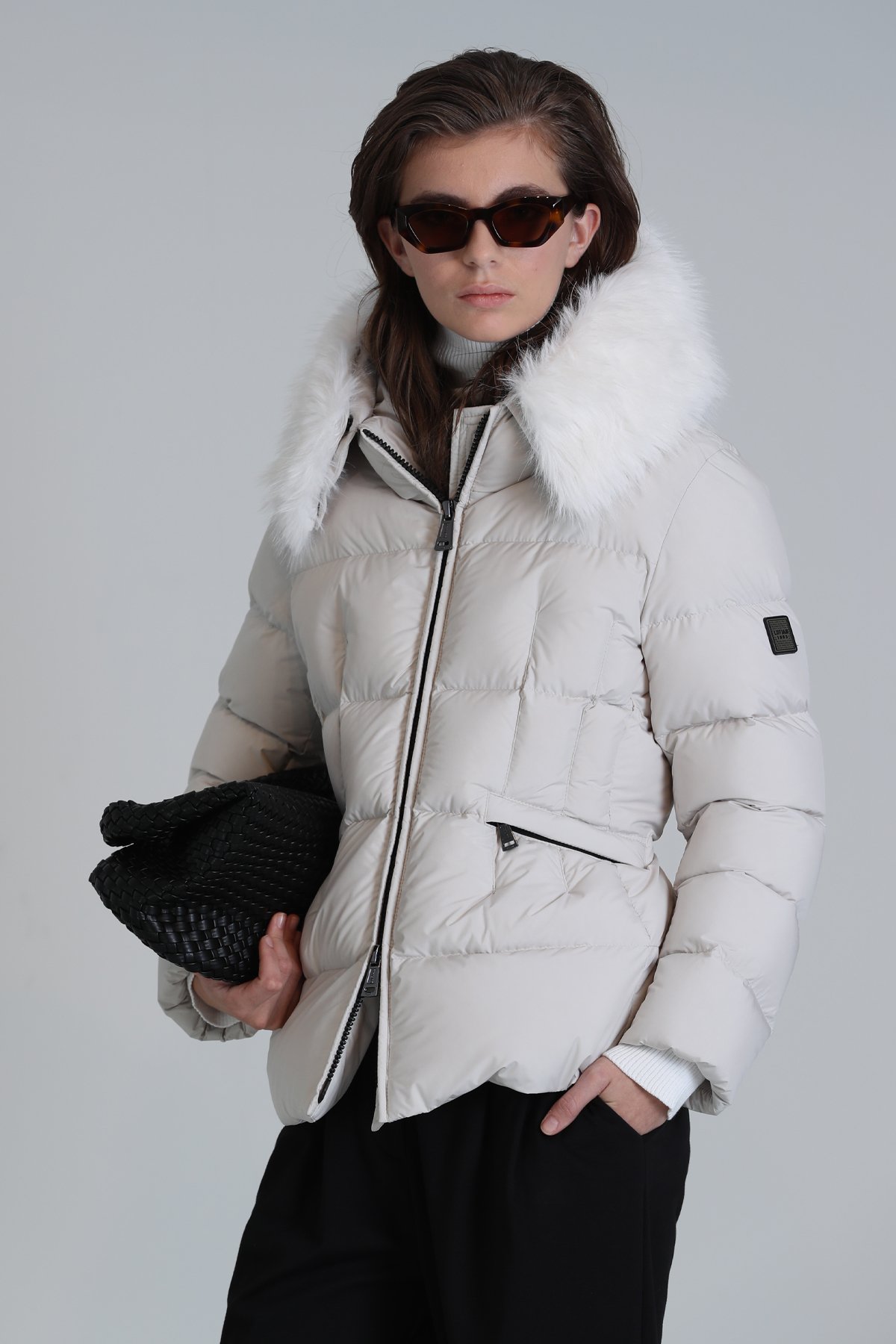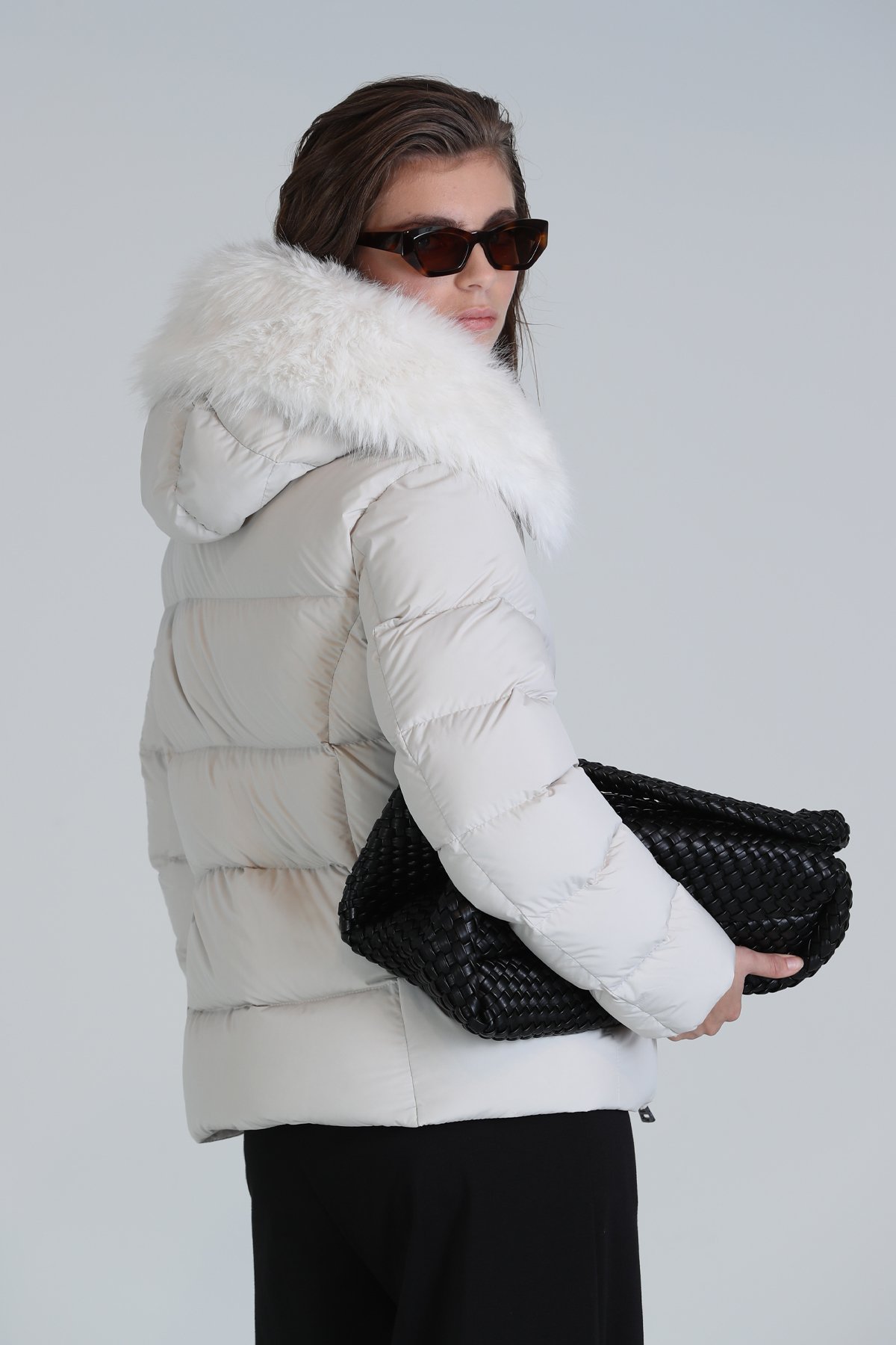 Klemantın Kaz Tüyü Kadın Mont Ekru