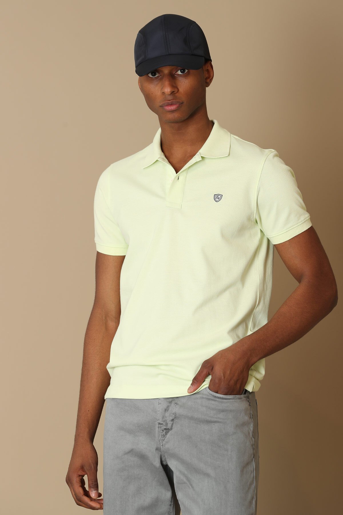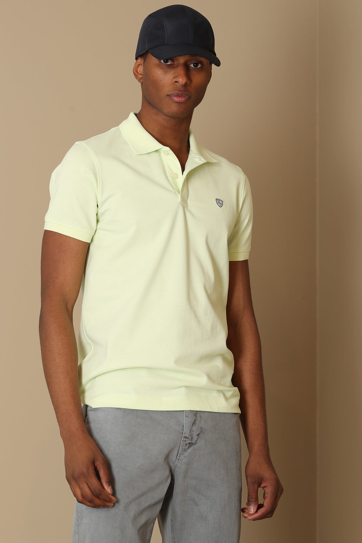 Laon Spor Polo Yaka Erkek Tişört Açık Sarı