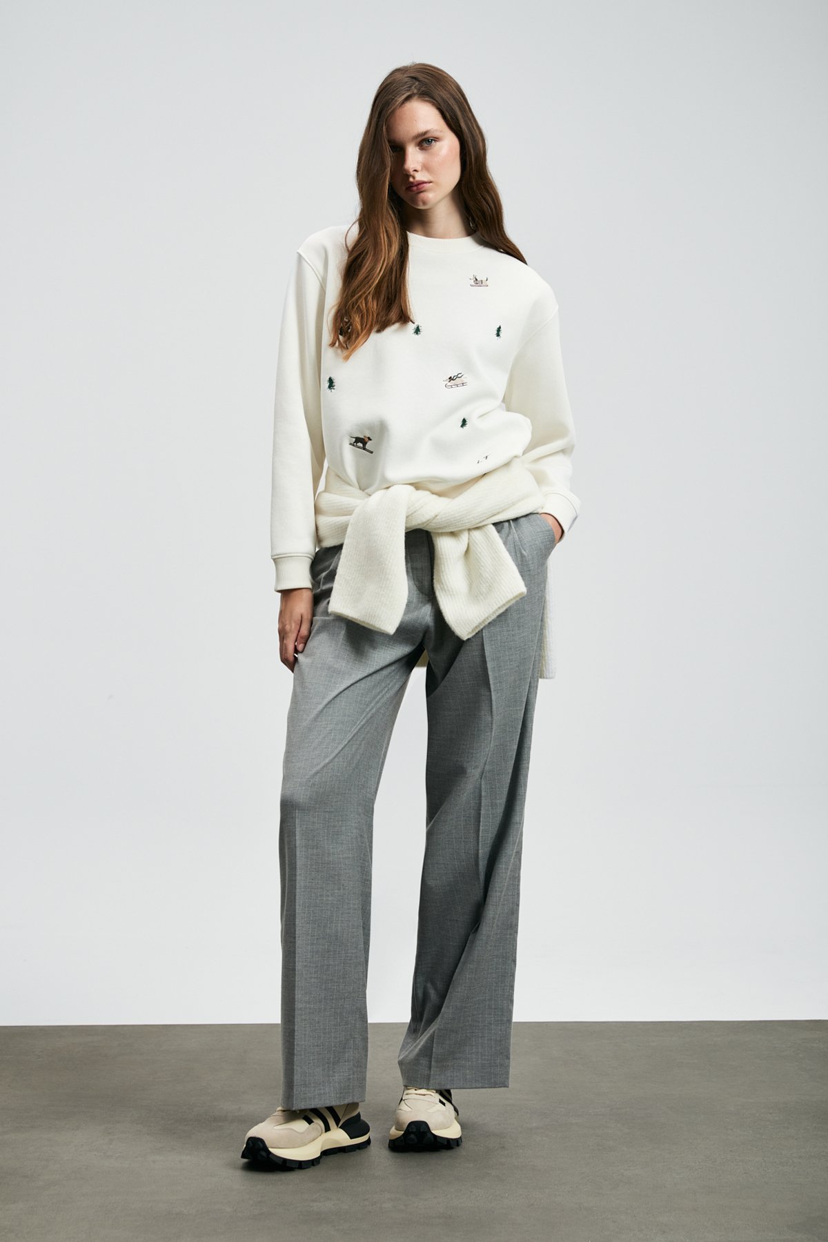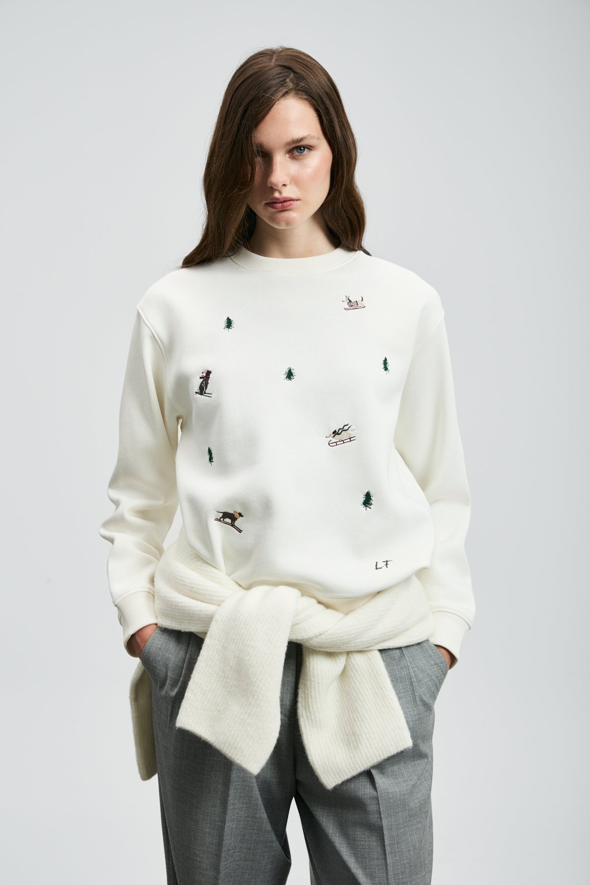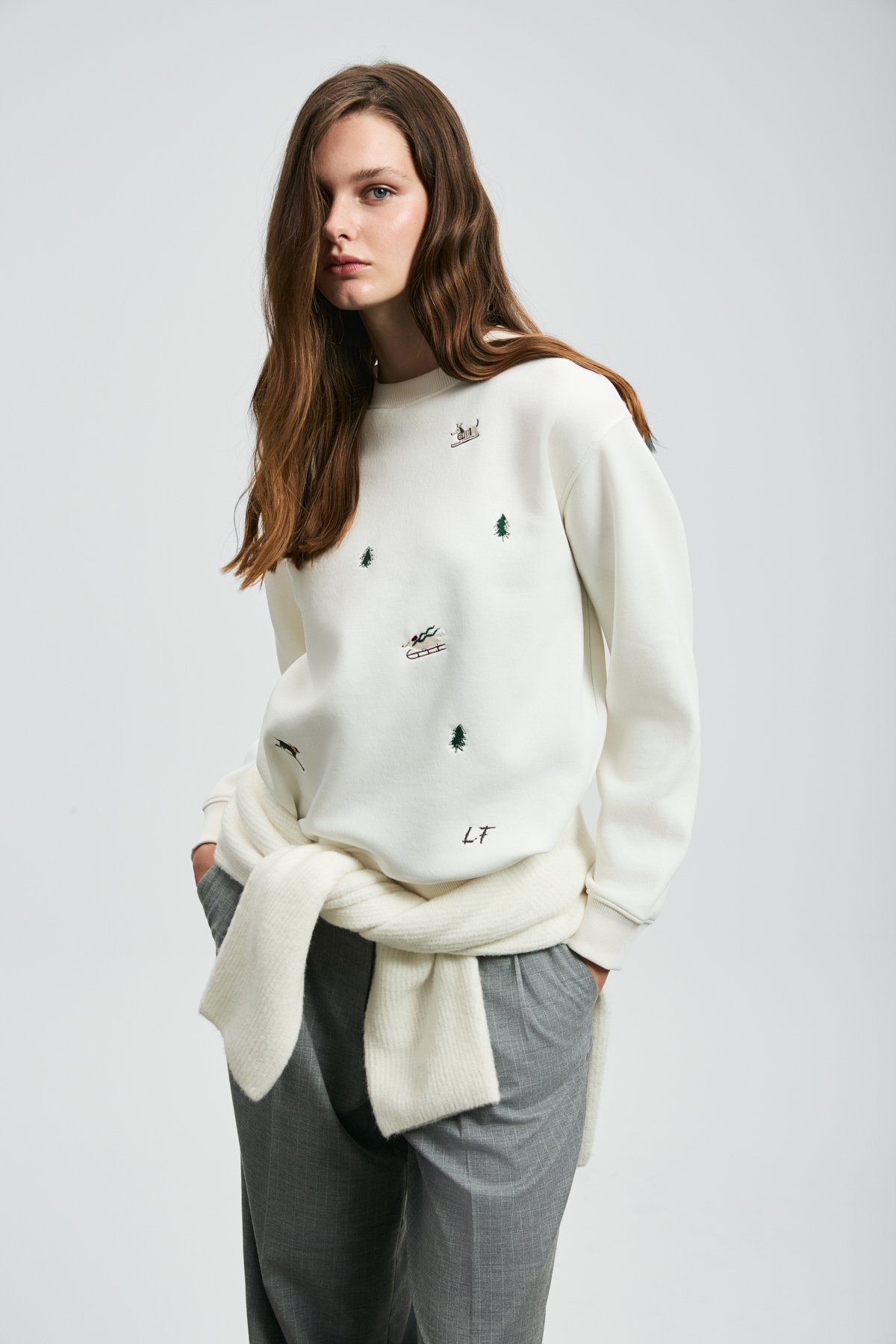 Merry Kadın Örme Sweatshırt Kırık Beyaz