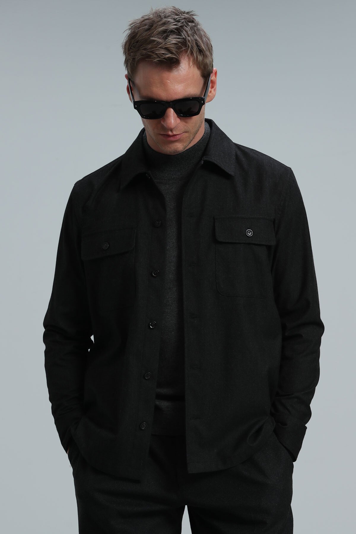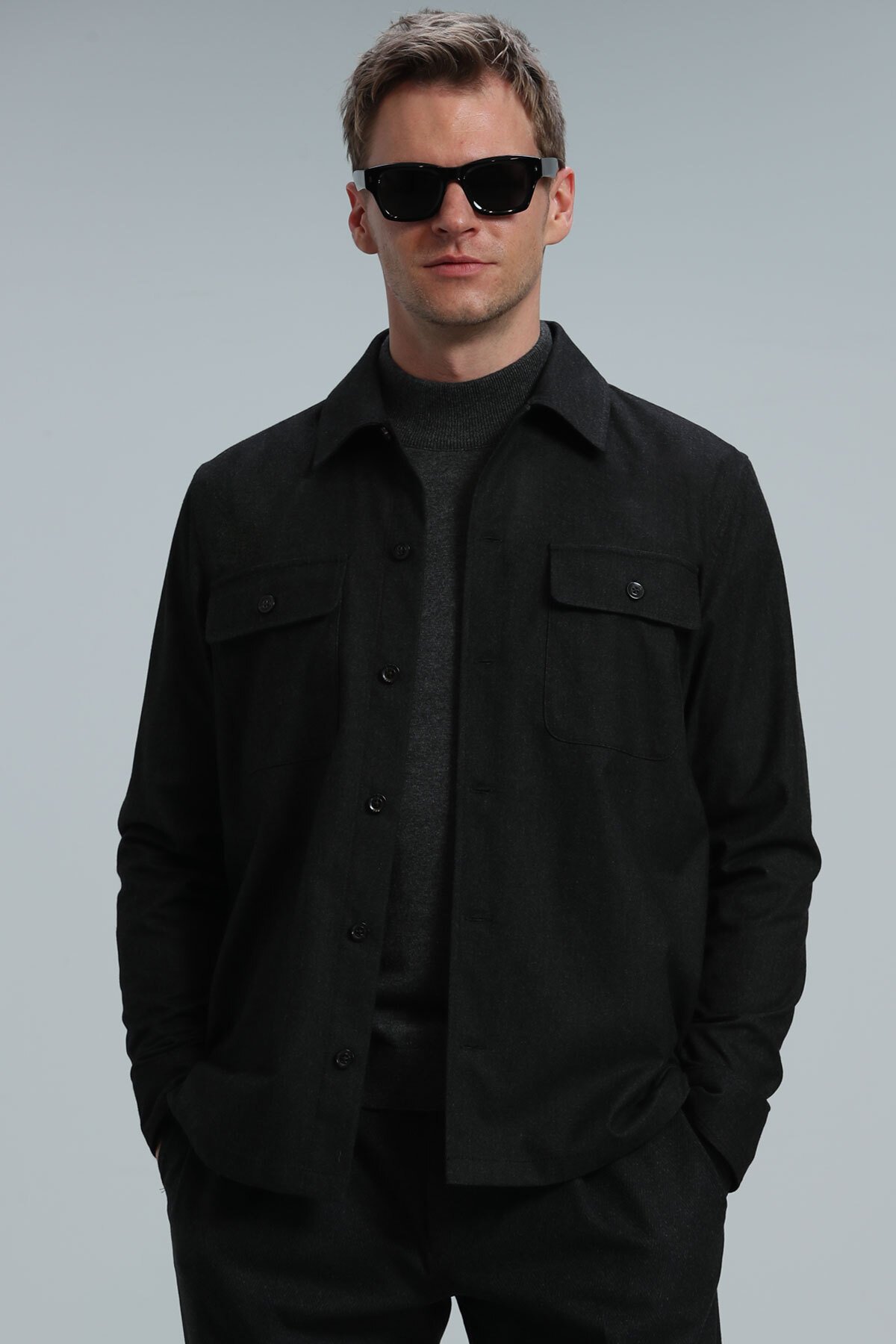 Never Erkek Basic Gömlek Regular Fit Antrasit