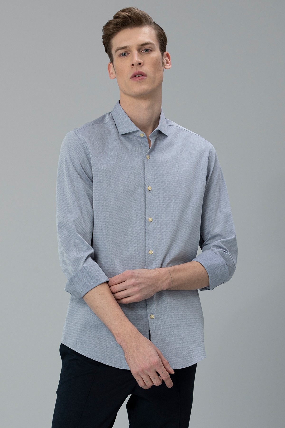 Oklo Erkek Smart Gömlek Slim Fit Gri