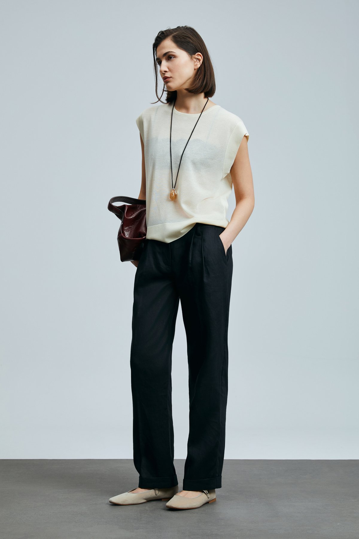 Navasa Kadın Keten Pantolon Siyah