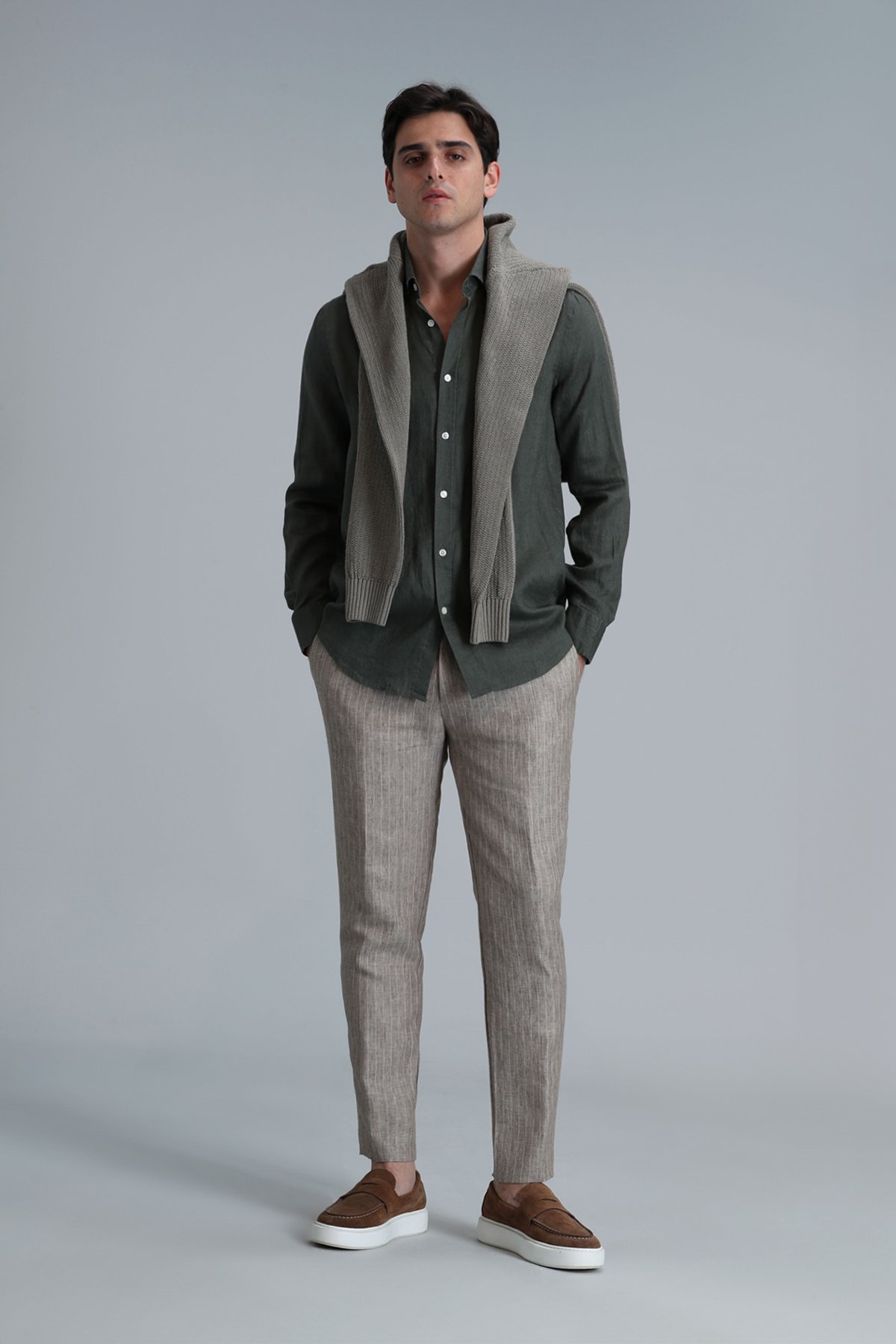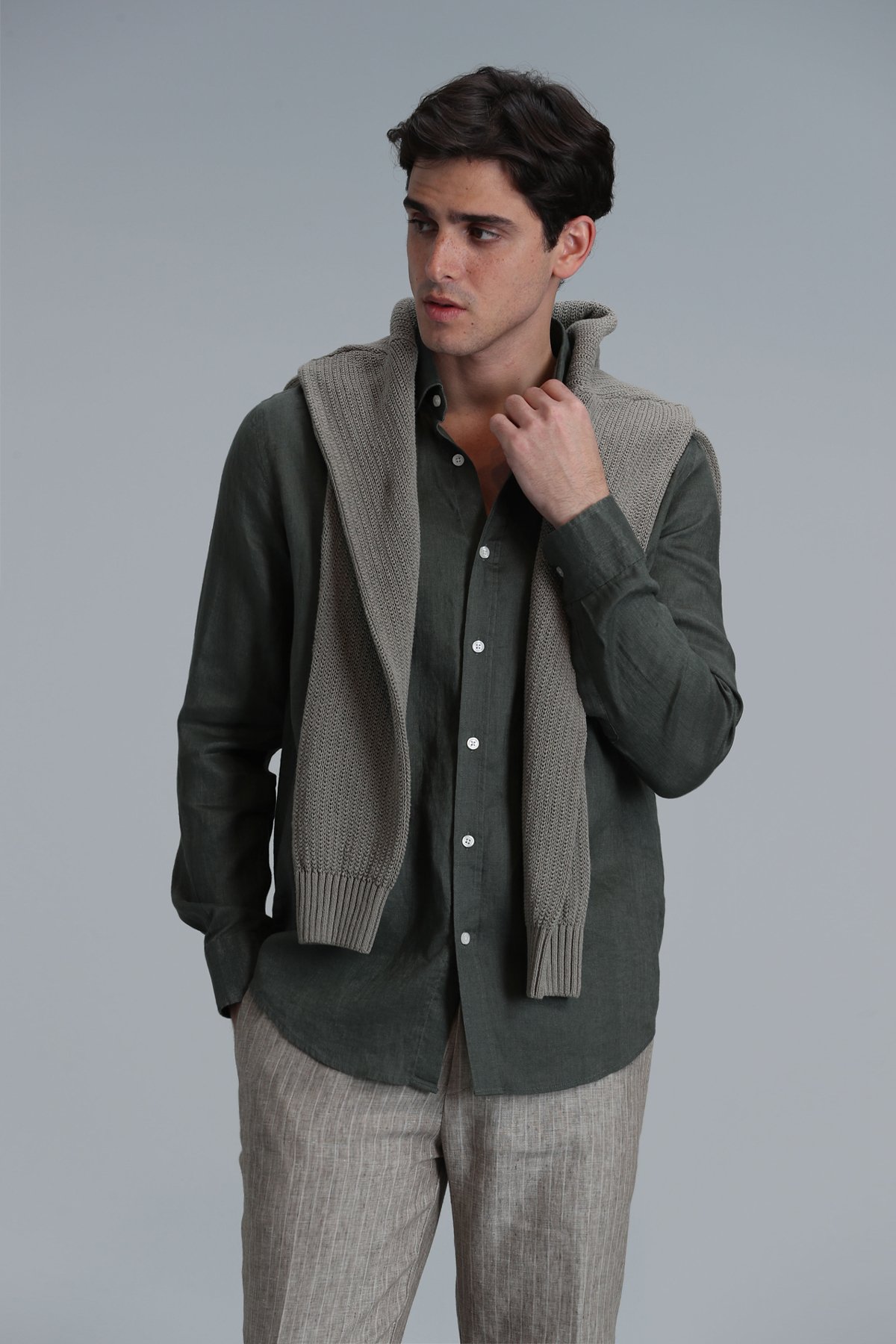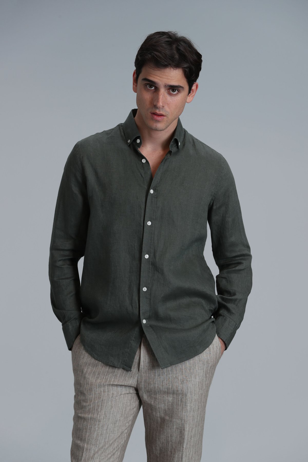 Pitaya Erkek Keten Gömlek Comfort Fit Haki