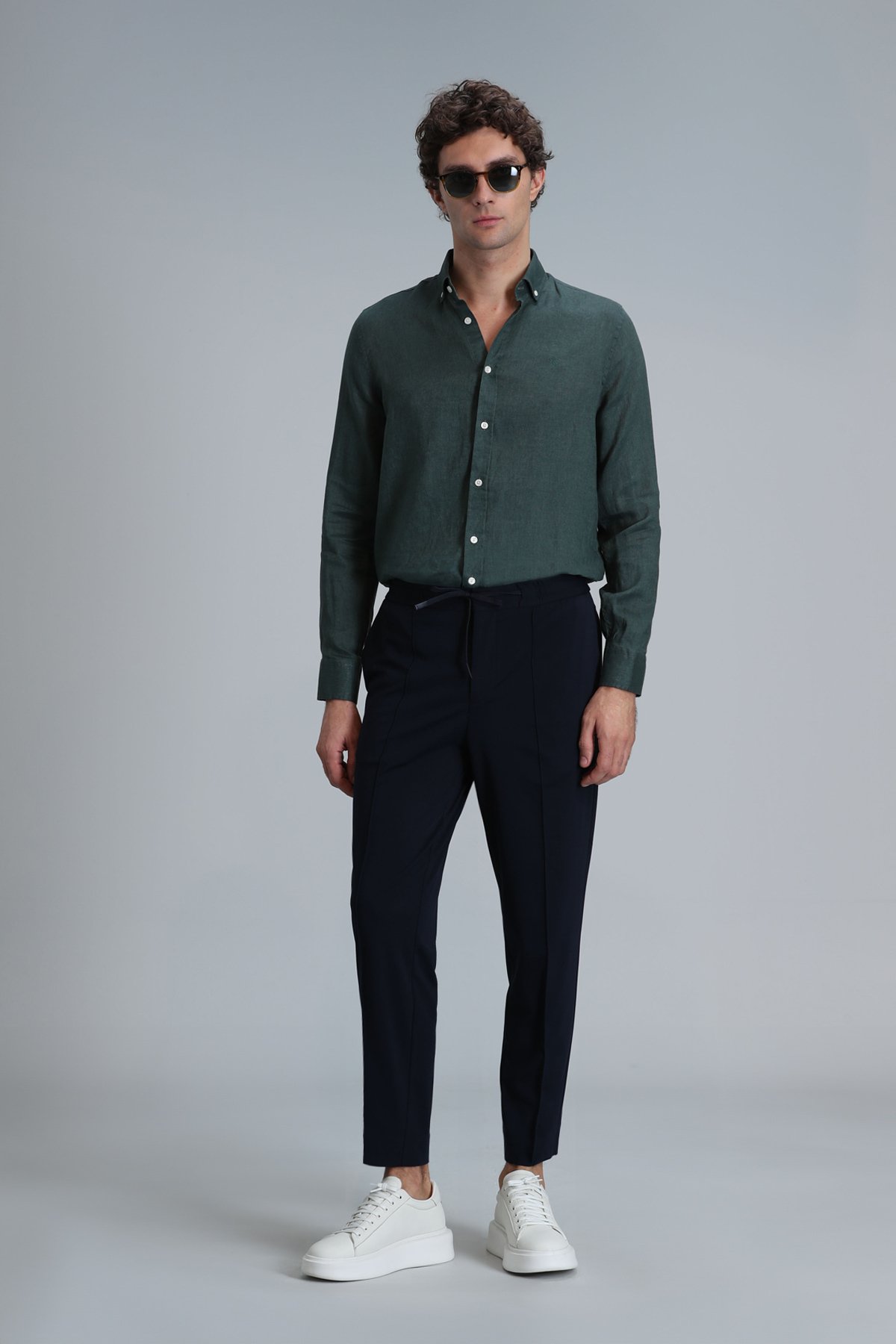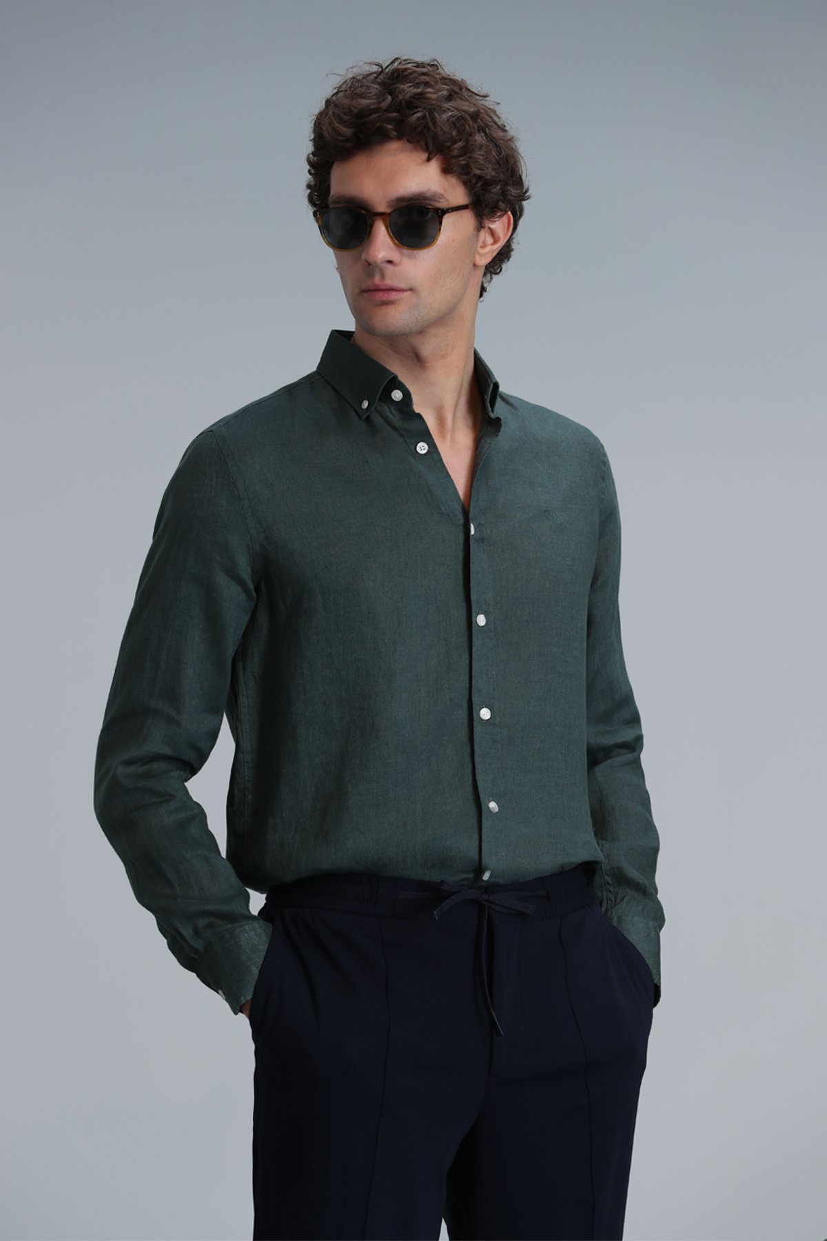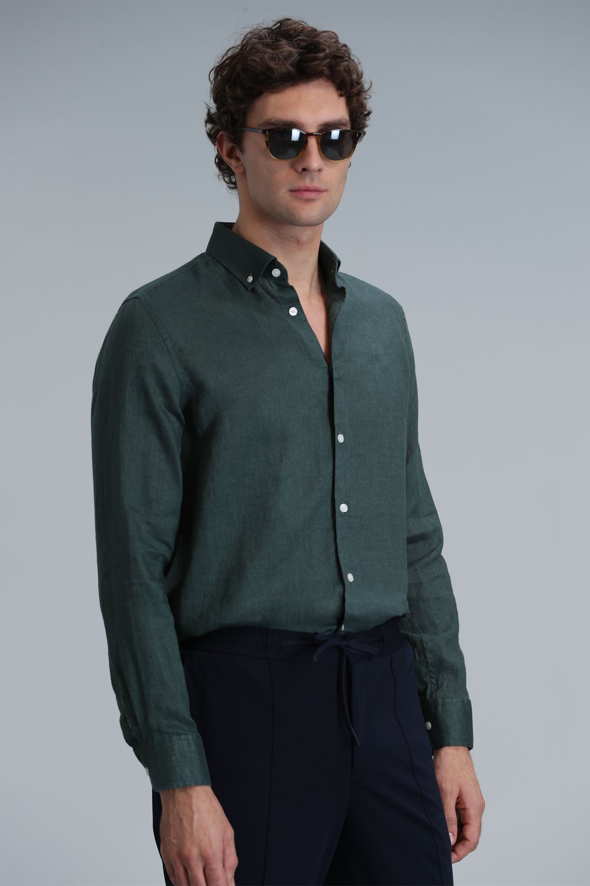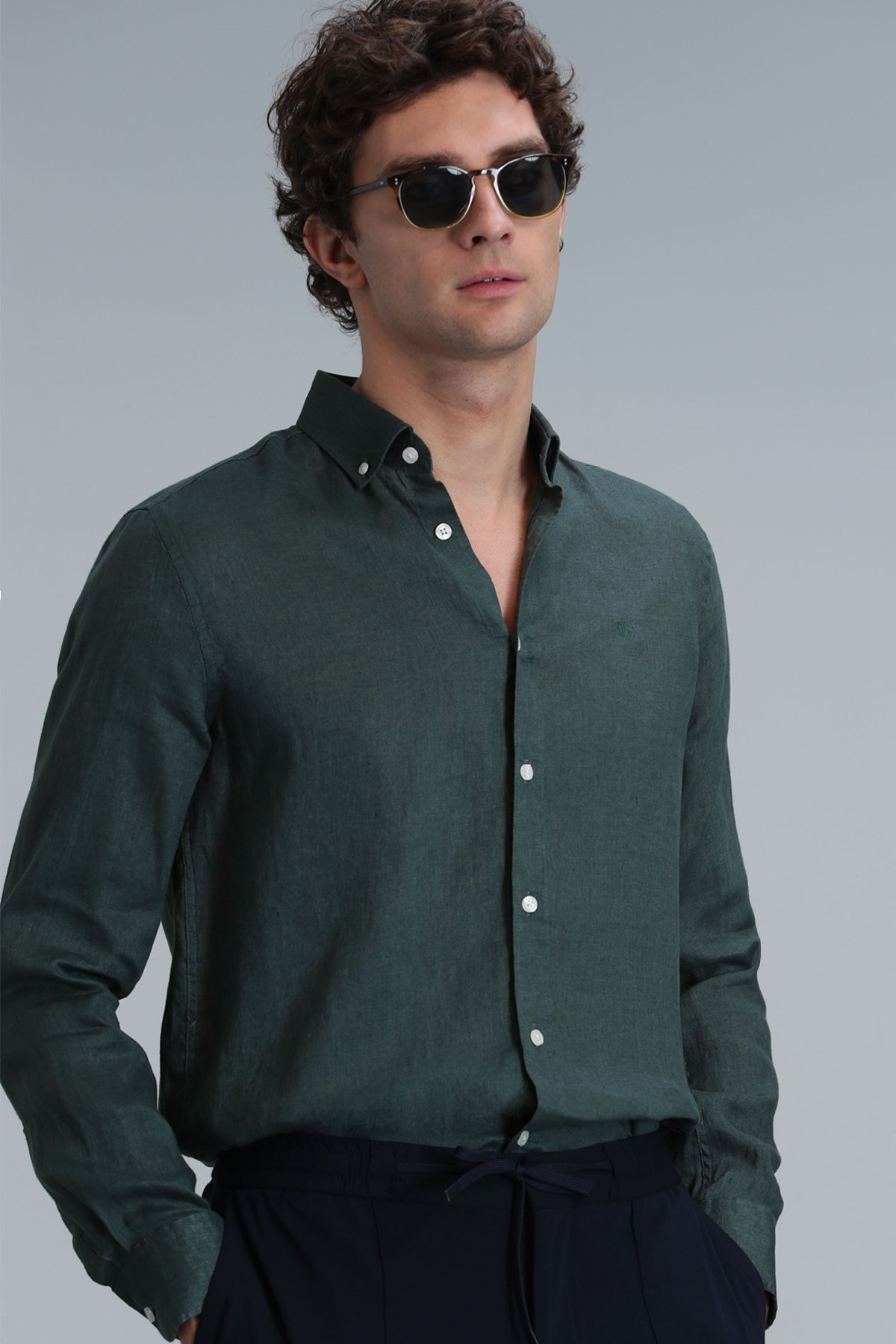 Pitaya Erkek Keten Gömlek Comfort Fit Yeşil