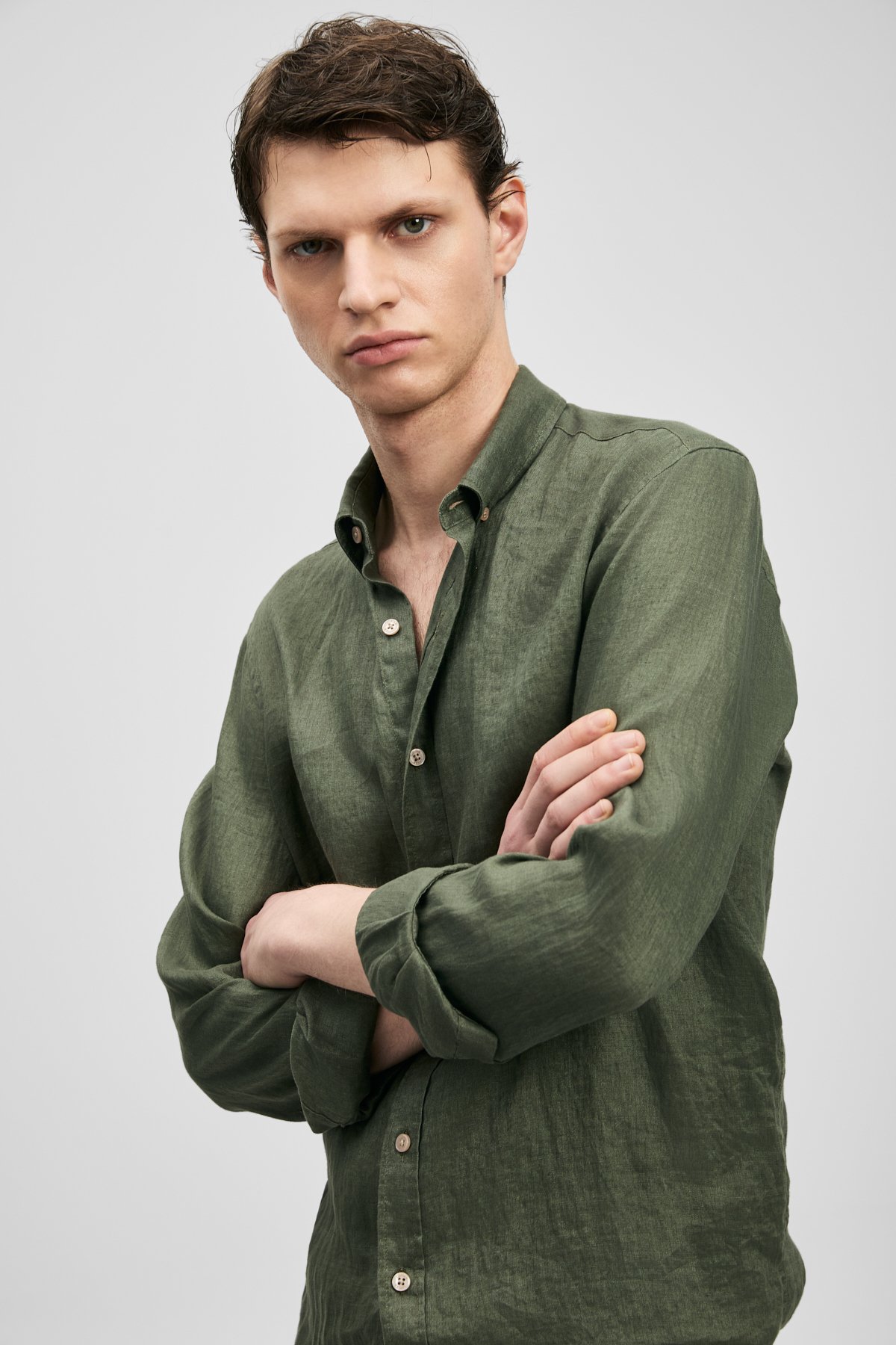 Pitaya Erkek Keten Gömlek Comfort Fit Haki