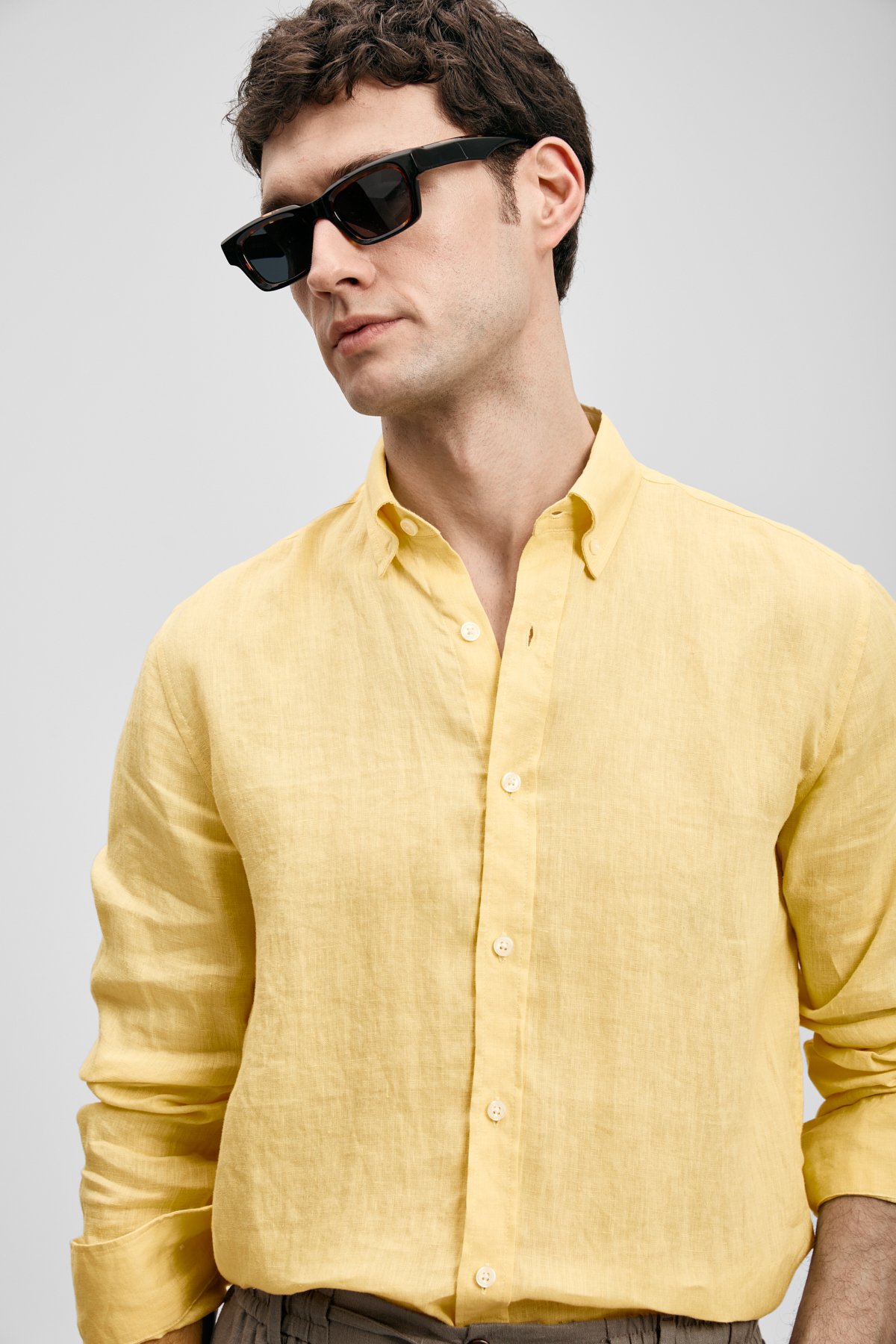 Pitaya Erkek Keten Gömlek Comfort Fit Sarı