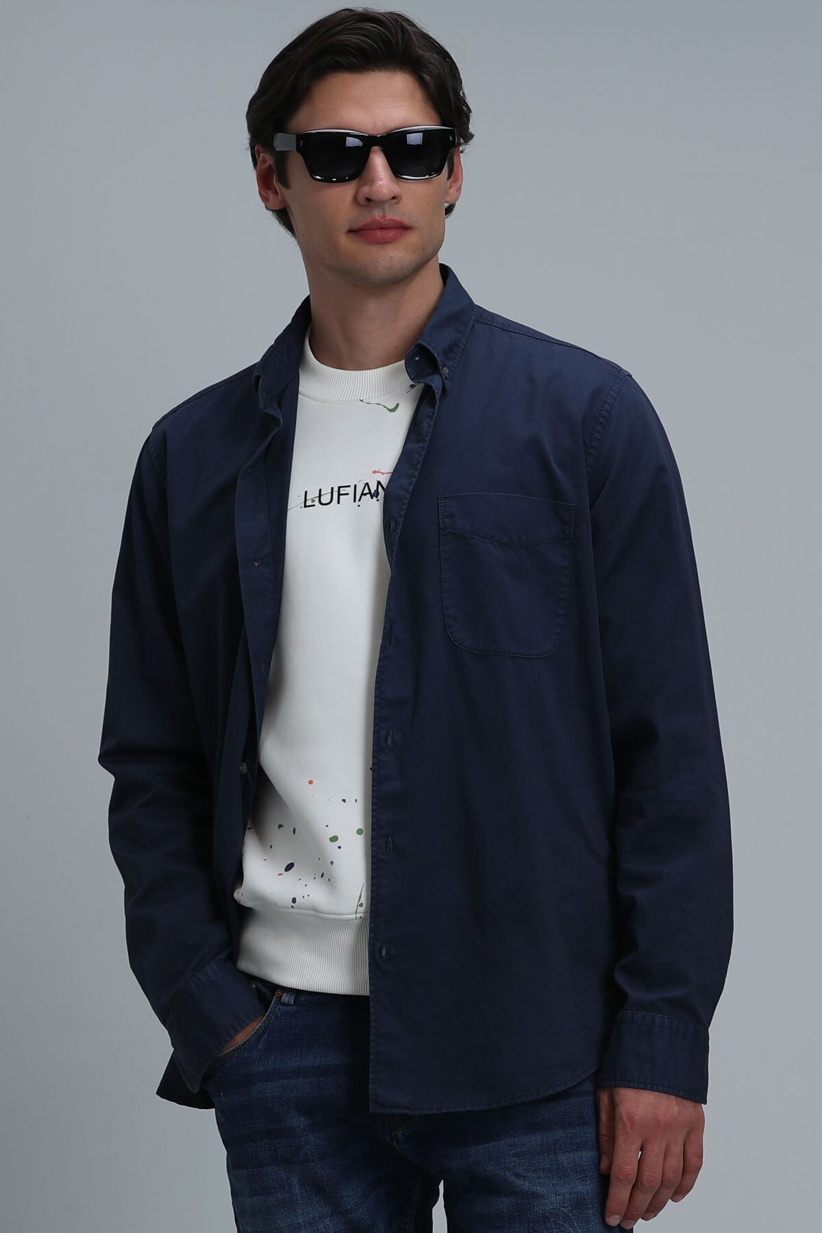 Real Erkek Basic Gömlek Comfort Fit Lacivert