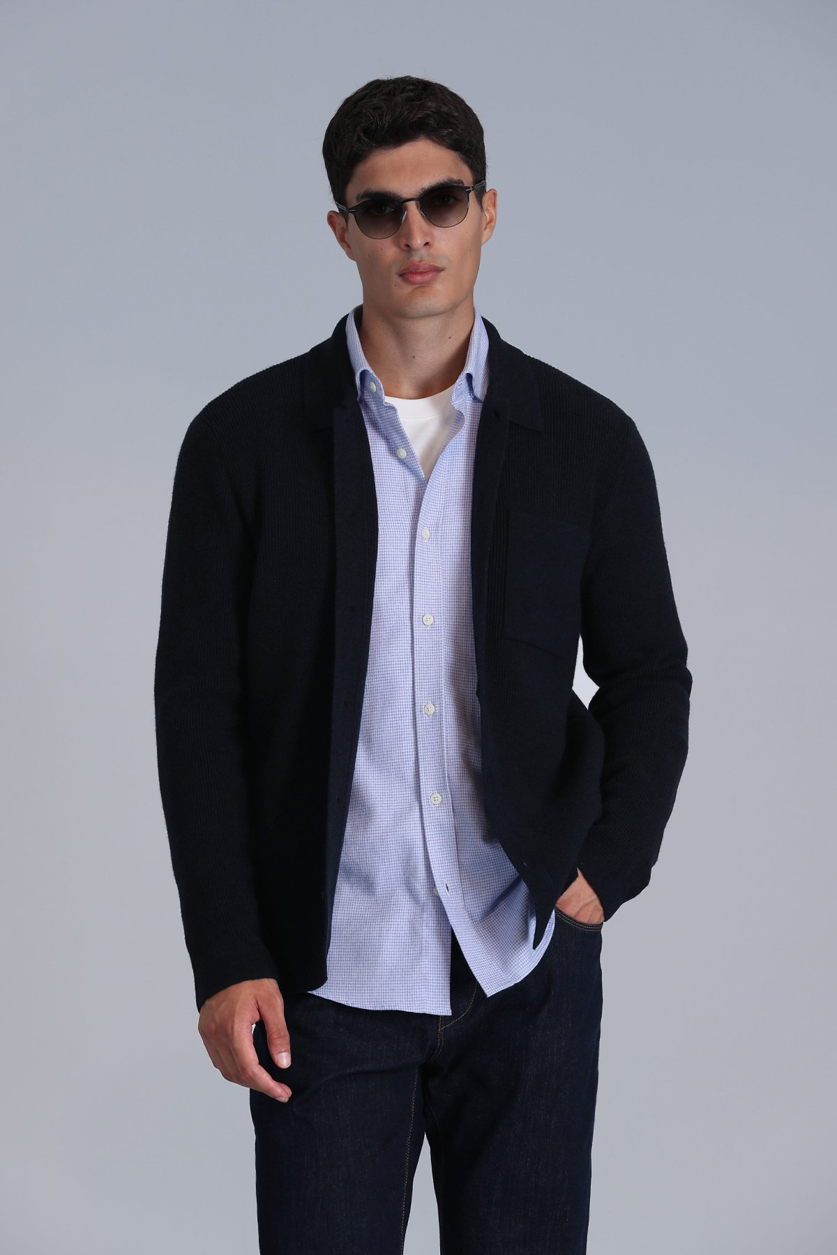 Solıd Erkek Hırka Lacivert