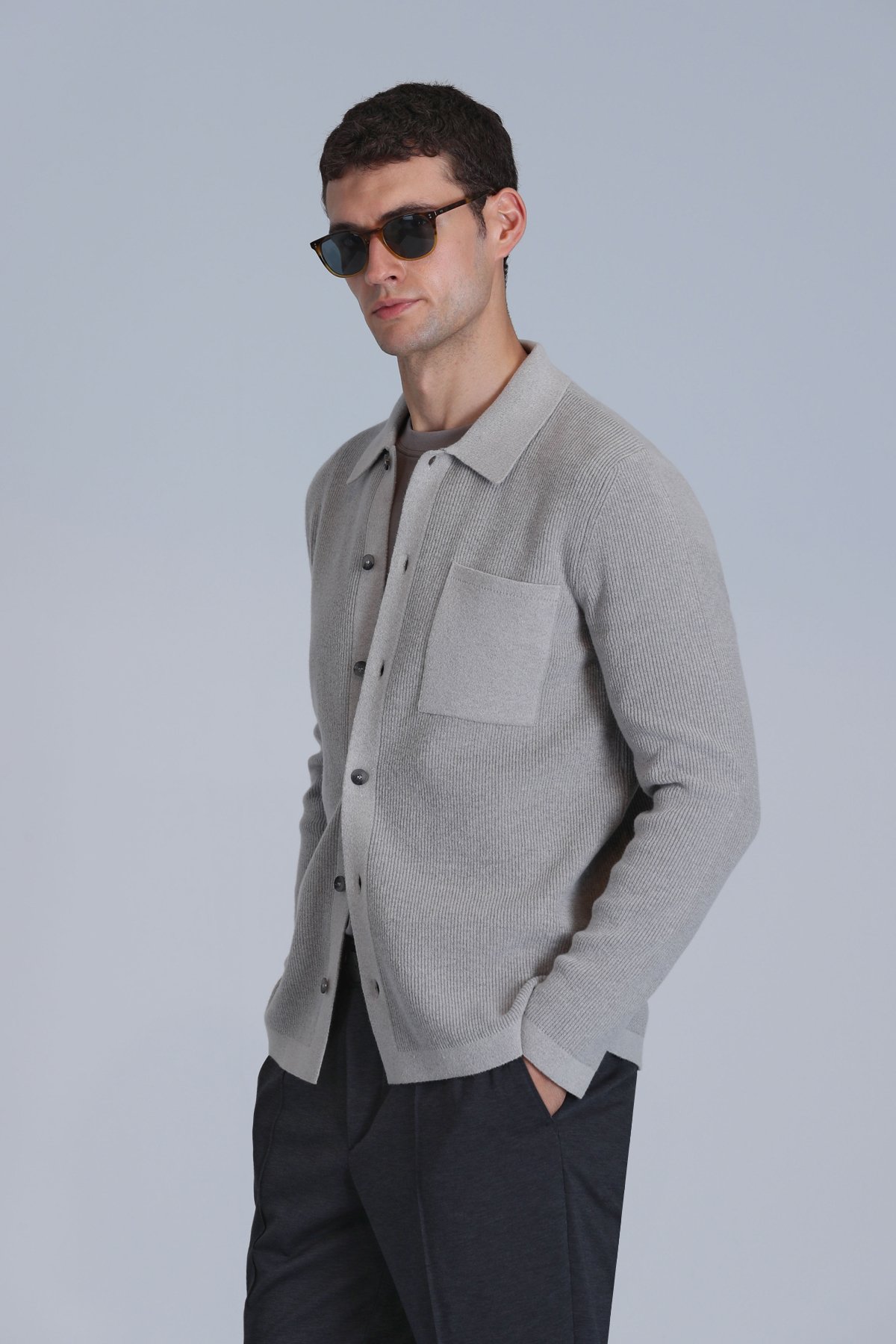 Solıd Erkek Hırka Vizon