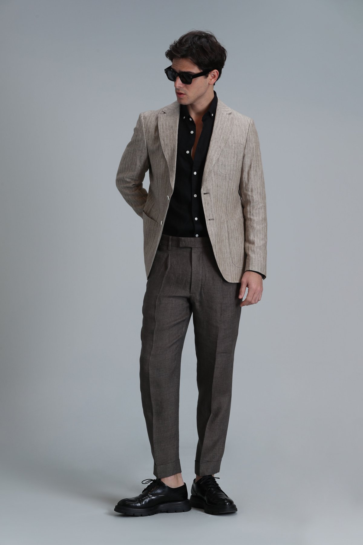 Pitaya Erkek Keten Gömlek Comfort Fit Kahverengi