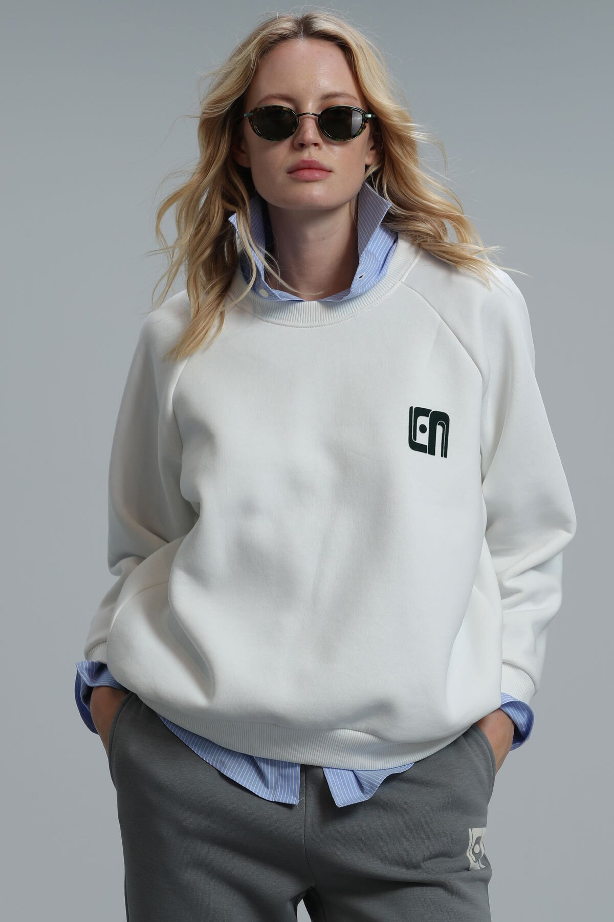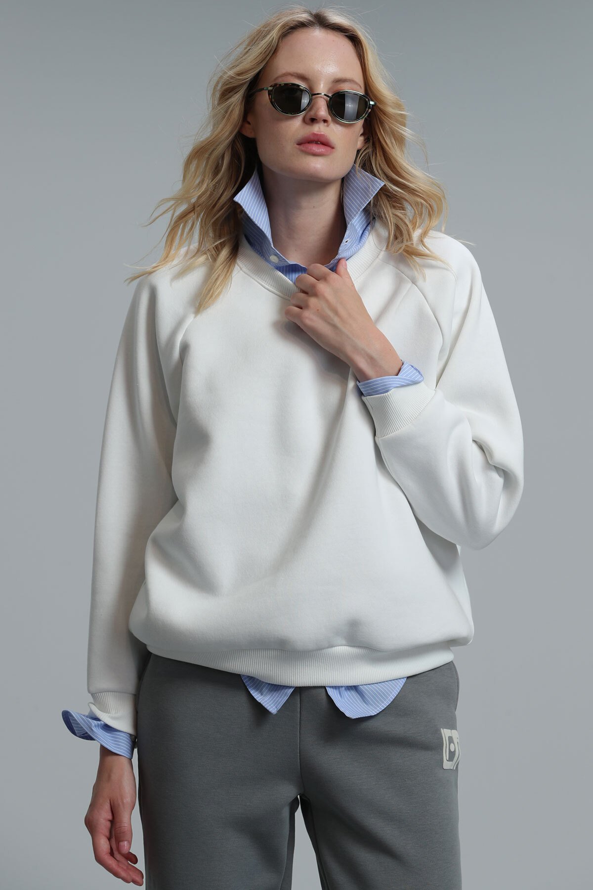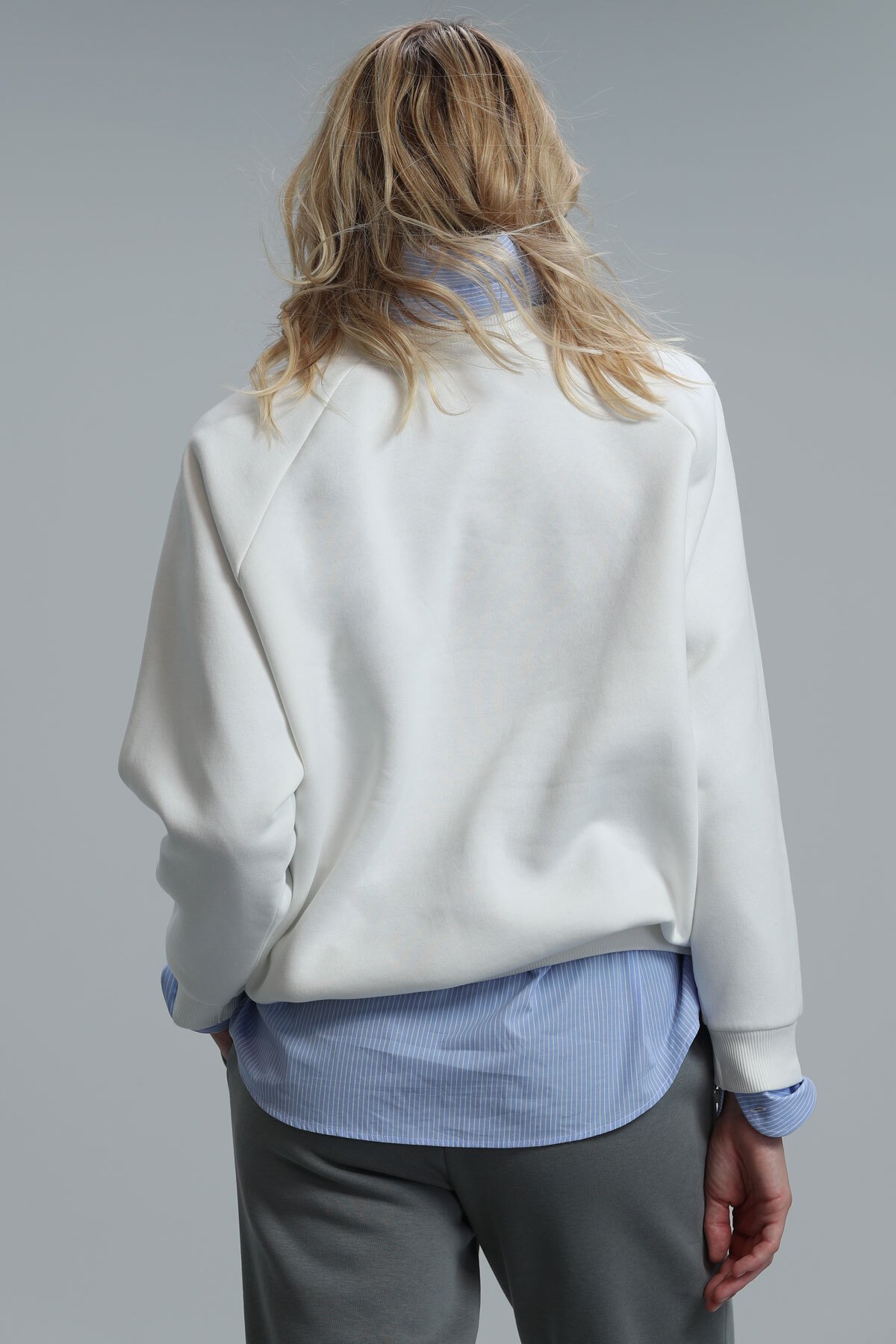 Ujın Kadın Örme Sweatshırt Kırık Beyaz