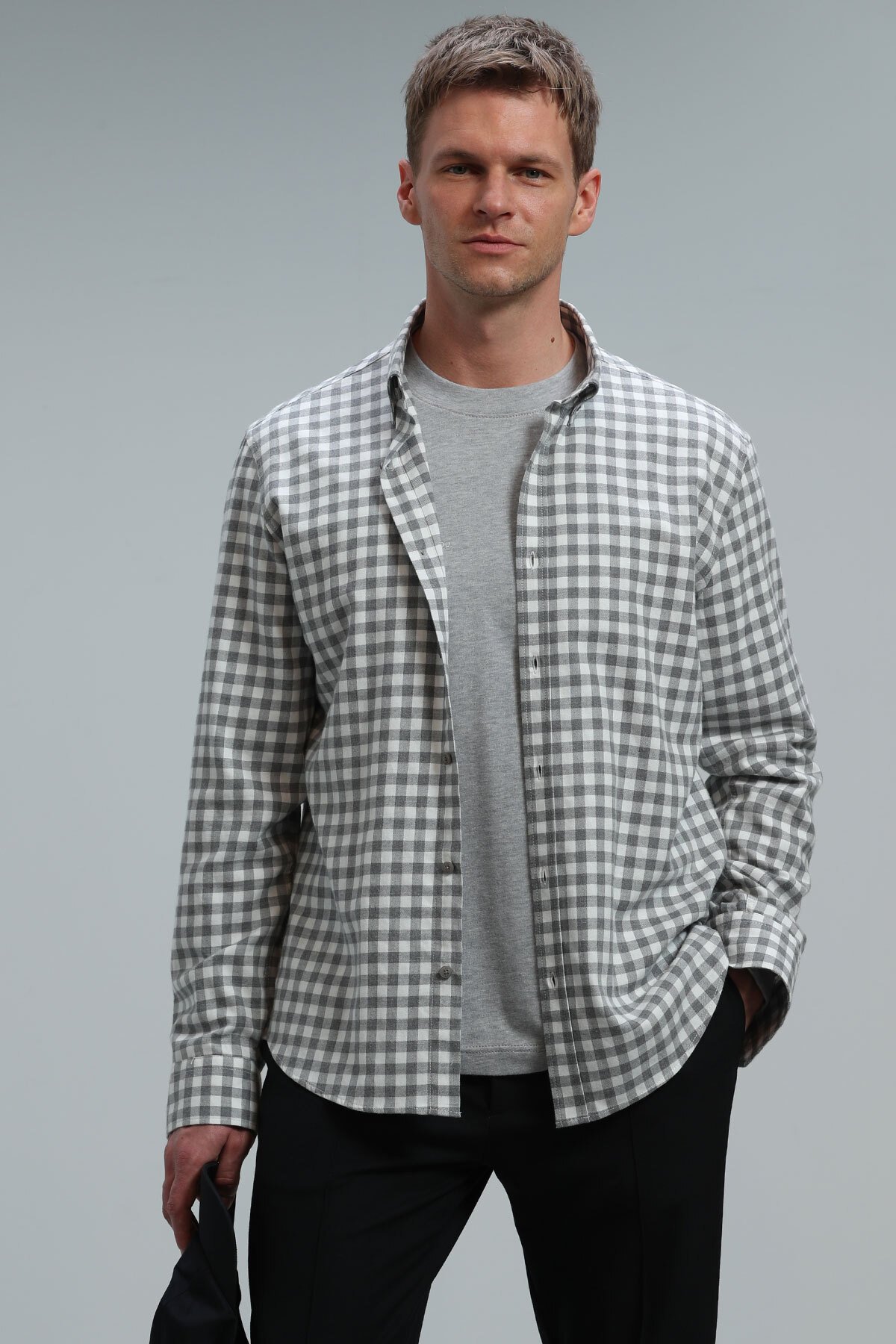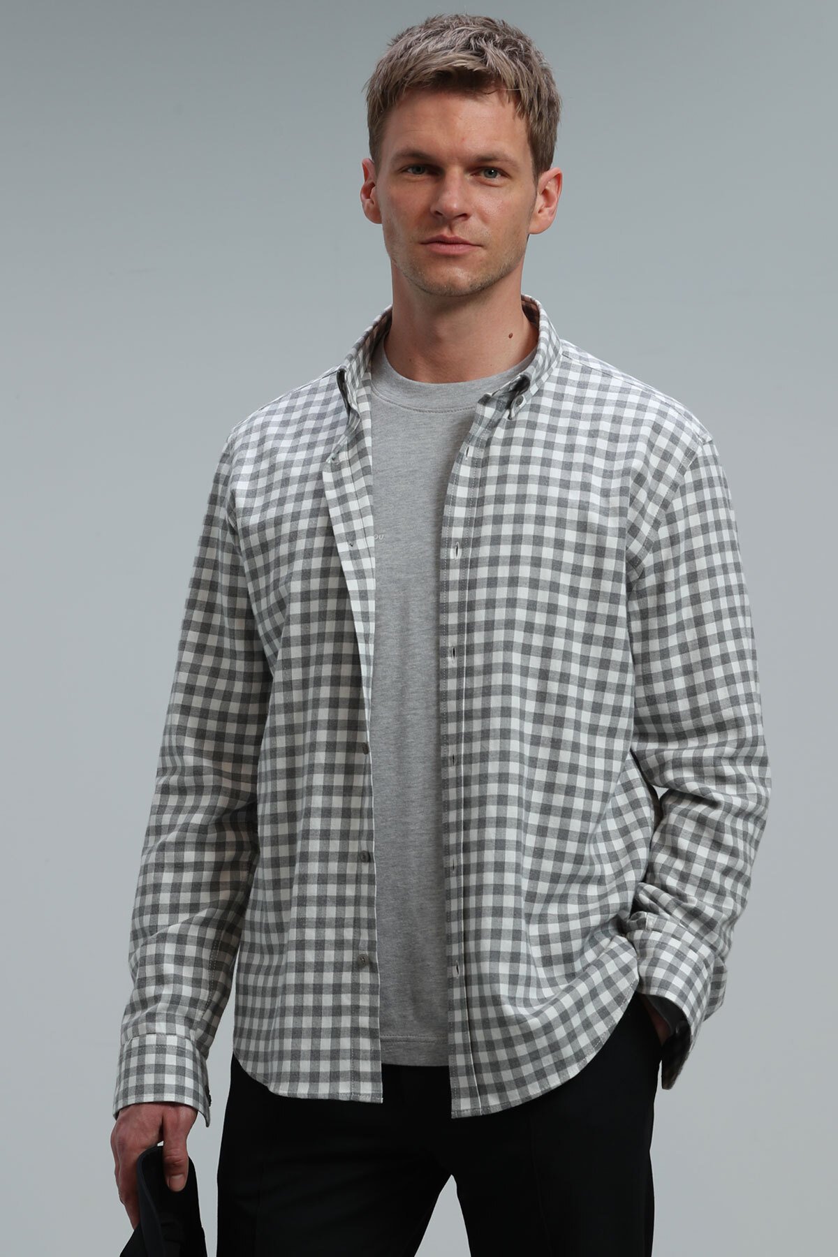 Vardar Erkek Basic Gömlek Regular Fit Gri