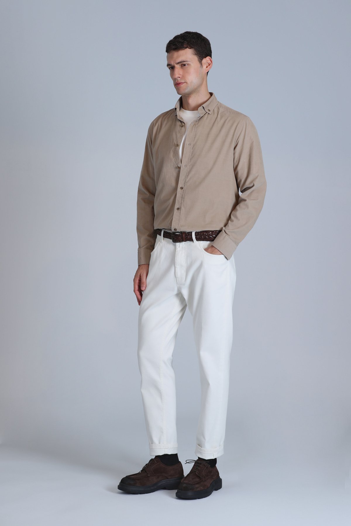 Water Erkek Basic Gömlek Slim Fit Bej